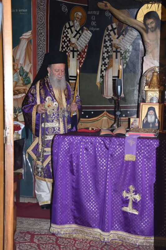 Το εσπέρας της Τετάρτης, 4 Μαρτίου 2026, ο Σεβασμιώτατος Ποιμενάρχης μας, Μητροπολίτης Χαλκίδος κ. Χρυσόστομος τέλεσε την ακολουθία των προηγιασμένων τιμίων Δώρων στην Ιερά Μονή Οσίου Δαυΐδ Γέροντος Λίμνης.