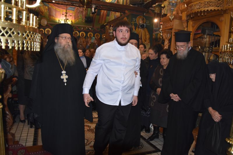 Κατά τη διάρκεια της ακολουθίας, ο Σεβασμιώτατος τέλεσε τη μοναχική κουρά του από ικανού καιρού δοκίμου της Ιεράς Μονής Κωνσταντίνου Κούκουρα, στον οποίο έδωσε το όνομα Κύριλλος.