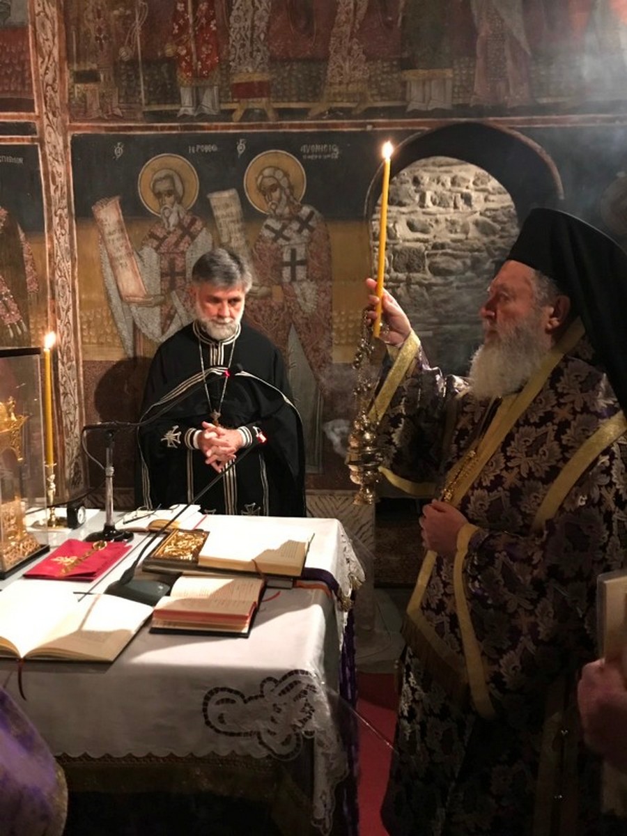 Το απόγευμα της Τετάρτης 27 Μαρτίου 2019 ο Σεβασμιώτατος Μητροπολίτης Χαλκίδος κ. Χρυσόστομος επισκέφθηκε την Ιερά Μονή Παναγίας Περιβλέπτου Πολτικών, συνοδευόμενος από τους Αρχιμ. Νικόδημο Ευσταθίου – Πρωτοσύγκελλο, Αρχιμ. Νεκτάριο Ευγενικό – Ιεροκήρυκα, Αρχιμ. Αιμιλιανό Χρήστου, Διάκ. Νικόλαο Πριμηκύριο, Διάκ. Ευγένιο Τσάλλα και Διάκ. Πορφύριο Γερμανό, όπου και τέλεσε την Προηγιασμένη Θ. Λειτουργία με τη συμμετοχή και του Αρχιμ. Γαβριήλ Σέρβου.