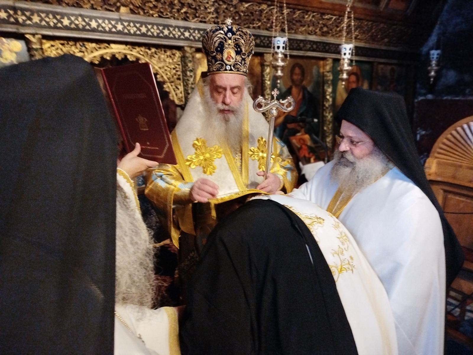 Τον Σεβασμιώτατο υποδέχθηκαν ο Πανοσιολογιώτατος Καθηγούμενος π. Μελχισεδέκ και η τιμία συνοδεία αυτού.
