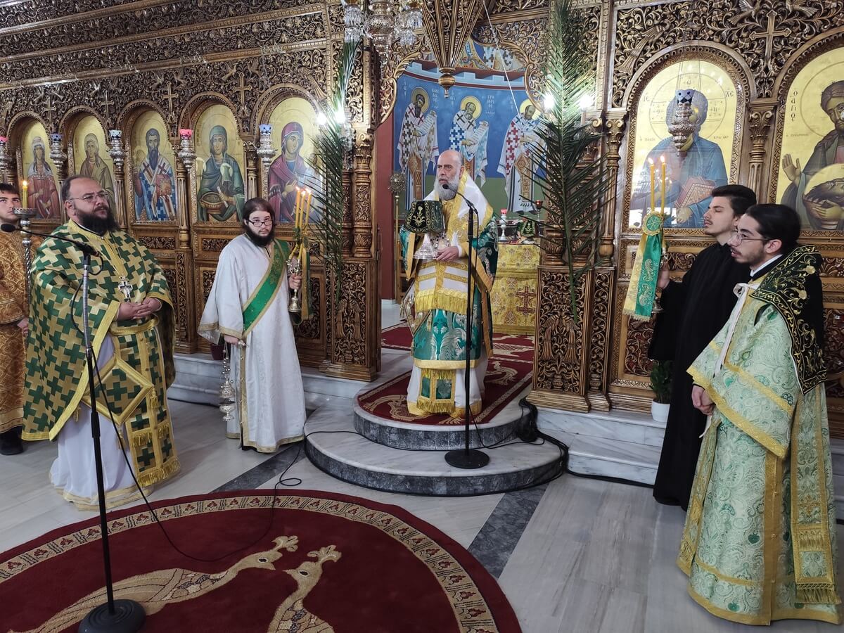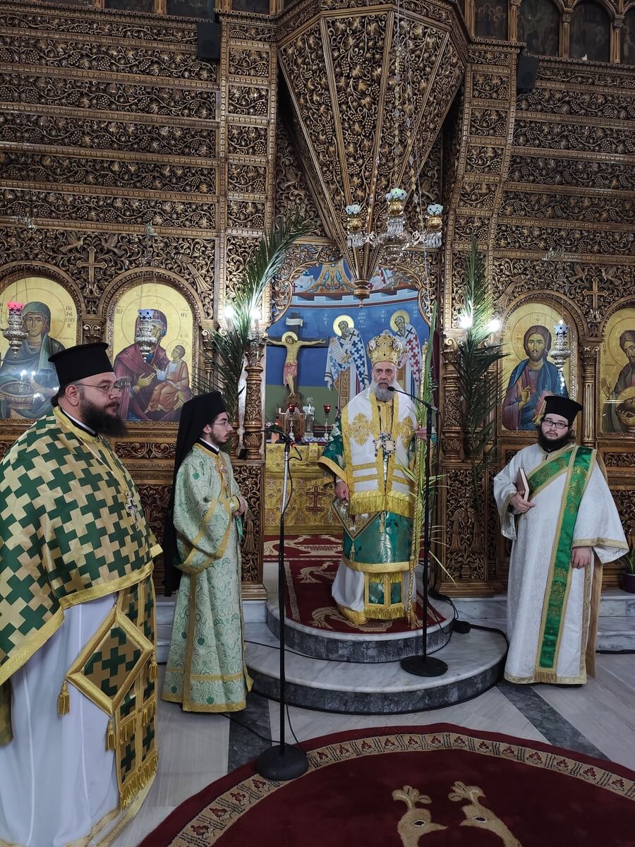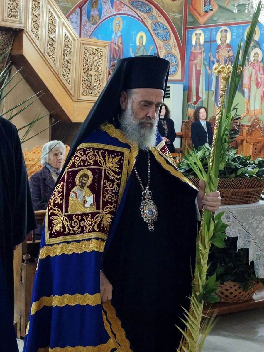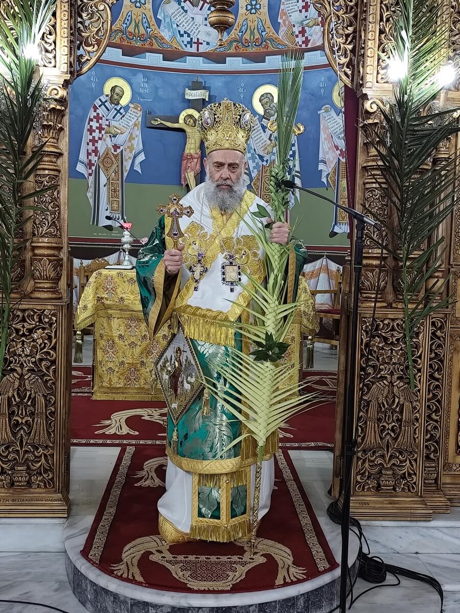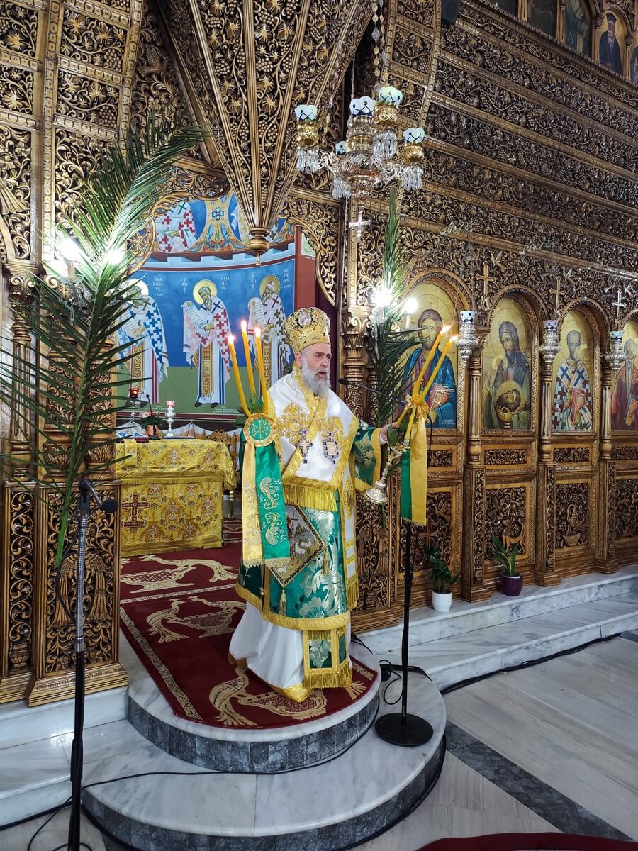 Ιδιαίτερη αναφορά έκανε ο Σεβασμιώτατος στο γεγονός της Αναστάσεως του Λαζάρου, που προηγήθηκε της σημερινής εορτής, τονίζοντας ότι ο Χριστός, ανασταίνοντας τον τετραήμερο φίλο Του, φανερώνει ότι είναι «Θεός ζώντων και νεκρών» και ταυτόχρονα προτυπώνει τη γενική ανάσταση των ανθρώπων. Όπως ο Λάζαρος εξήλθε από τον τάφο, έτσι και κάθε άνθρωπος καλείται να αναστηθεί, να εξέλθει από τον πνευματικό θάνατο και να κοινωνήσει εκ νέου με τον Θεό και τον συνάνθρωπο.