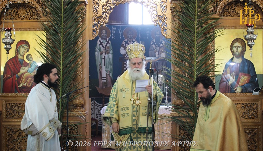 Με εκκλησιαστική λαμπρότητα εορτάσθηκε η Κυριακή των Βαΐων, 5 Απριλίου 2026, στον Ενοριακό Ιερό Ναό των Πρωτοκορυφαίων Αποστόλων Πέτρου και Παύλου, στο μαρτυρικό Κομμένο Άρτης, ιερουργούντος του Σεβασμιωτάτου Μητροπολίτου Άρτης κ. Καλλινίκου. Συμμετείχαν ευσεβείς Χριστιανοί, οι οποίοι προσήλθαν για να τιμήσουν την θριαμβευτική Είσοδο του Κυρίου στα Ιεροσόλυμα.