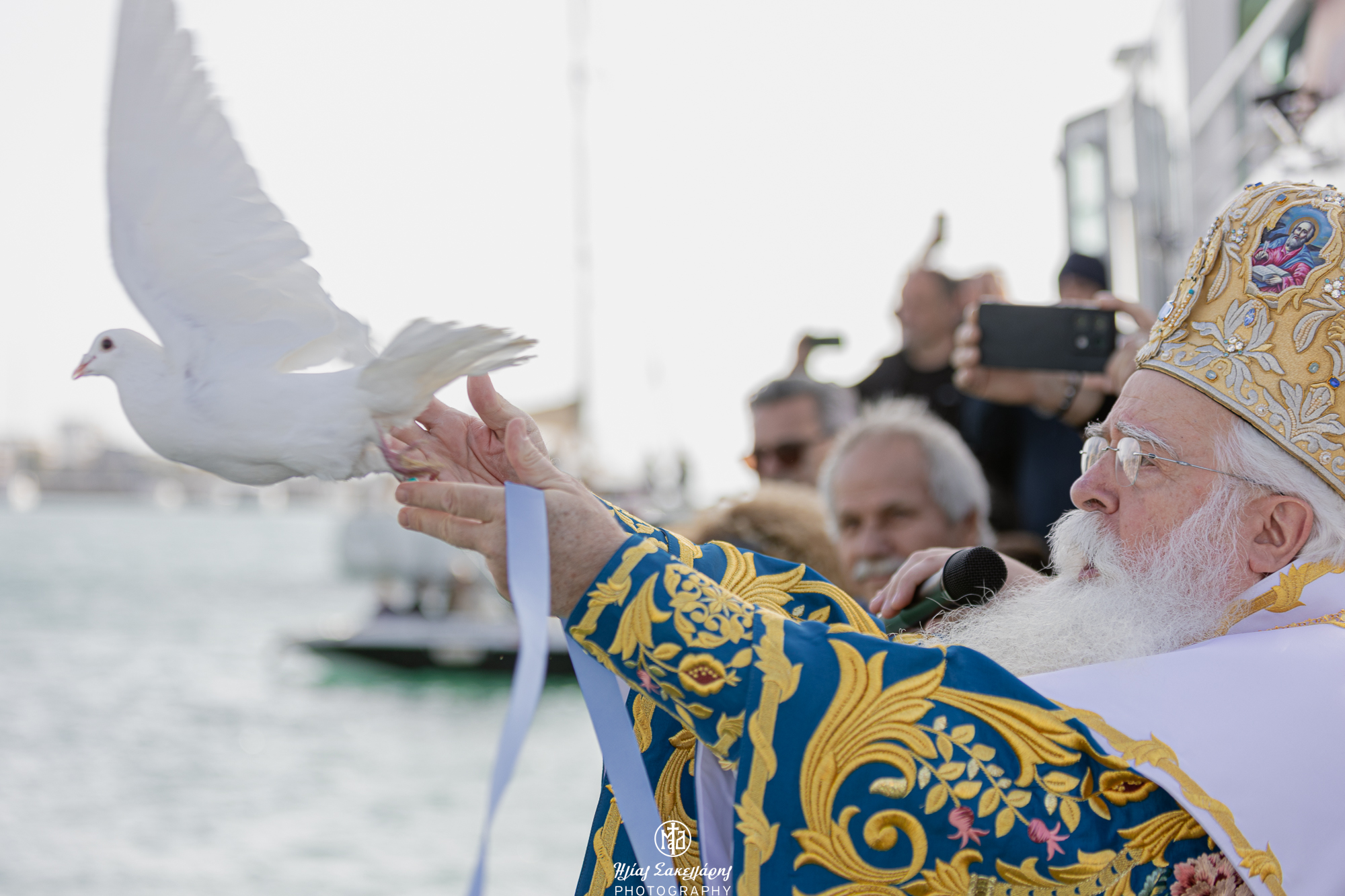 Στο τέλος της Θείας Λειτουργίας, ο Σεβ. κ. Ιγνάτιος τέλεσε την ακολουθία του Μεγάλου Αγιασμού των Θεοφανείων, παρουσία των Βουλευτών Μαγνησίας κ.κ. Ζέτας Μακρή, Χρήστου Μπουκώρου και Αλέξανδρου Μεϊκόπουλου, του Περιφερειάρχου Θεσσαλίας κ. Δημητρίου Κουρέτα, της Αντιπεριφερειάρχου Μαγνησίας & Βορείων Σποράδων κ. Άννας – Μαρίας Παπαδημητρίου, του Δημάρχου Βόλου κ. Αχιλλέα Μπέου, των επικεφαλής των Στρατιωτικών, Λιμενικών, Αστυνομικών και Πυροσβεστικών Αρχών και εκπροσώπων της Τοπικής Αυτοδιοίκησης. Ακολούθησε η λιτάνευση του Τιμίου Σταυρού και της Ιεράς Εικόνος της Βαπτίσεως, υπό τους ήχους της Φιλαρμονικής του Δήμου Βόλου, συνοδεία Στρατιωτικού αγήματος, με κατεύθυνση την παραλία του Βόλου, όπου, από ευπρεπισμένου σκάφους, ο Σεβασμιώτατος τέλεσε τον Αγιασμό των υδάτων, παρουσία μεγίστου πλήθους επισκεπτών. Στην θάλασσα βούτηξαν είκοσι τρεις (23) κολυμβητές, για να πιάσουν τον Σταυρό, οι οποίοι έδωσαν ομολογία πίστης στον Χριστό και αγάπης στην Πατρίδα, ψάλλοντας τον Εθνικό μας Ύμνο. Στον εόρτιο χαιρετισμό του ο κ. Ιγνάτιος τόνισε ότι «ο Παγασητικός μας ενώνει, μας ζωογονεί. Γι’ αυτό, τον θέλουμε πάντα καθαρό και ευλογημένο… Ο καθένας μας χρειάζεται, τούτη την χρονιά, να δώσουμε τον καλύτερό μας εαυτό, για να κρατήσουμε ενωμένες τις οικογένειές μας». Ο Σεβ. κ. Ιγνάτιος ευχαρίστησε τους Κληρικούς μας, για τους κόπους τους, να κυλίσει ομαλά το Άγιο Δωδεκαήμερο σε όλο το εύρος της Τοπικής μας Εκκλησίας, ευχαρίστησε τους εκπροσώπους των Αρχών για την συνεργασία και την μεταξύ μας ενότητα. Αναφέρθηκε στις δύσκολες στιγμές που περνά ο κόσμος, όπου η βία του ισχυρού επικρατεί και ευχήθηκε για την ειρήνη και την καλή χρήση της ελευθερίας μας, καθώς και την διαρκή έκφραση της αγάπης μας, με αλληλεγγύη και προσφορά.