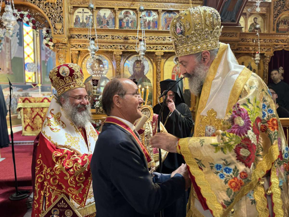 Των Ιερών Ακολουθιών του διημέρου προέστη, κατόπιν προσκλήσεως του Σεβασμιωτάτου Ποιμενάρχου, Μητροπολίτου Ρεθύμνης και Αυλοποτάμου κ. Προδρόμου, ο Σεβασμιώτατος Αρχιεπίσκοπος Αυστραλίας, Υπέρτιμος και Έξαρχος πάσης Ωκεανίας, κ. Μακάριος, ο οποίος χοροστάτησε κατά τον Μέγα Πανηγυρικό Εσπερινό, το απόγευμα της Δευτέρας, 27ης Οκτωβρίου 2025, και, μετά την θερμή προσφώνηση του Σεβασμιωτάτου Ποιμενάρχου κ. Προδρόμου, ομίλησε εμπνευσμένα προς το πυκνό εκκλησίασμα.