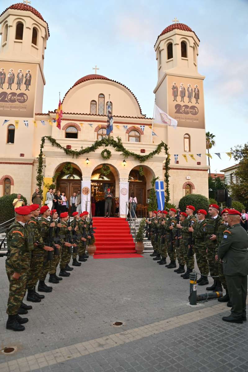 Μετά το πέρας της Θείας Λειτουργίας, πραγματοποιήθηκε η καθιερωμένη Δοξολογία επί τη Εθνική Εορτή και ο Σεβασμιώτατος Αρχιεπίσκοπος Αυστραλίας κ. Μακάριος, με εμπνευσμένο λόγο, αναφέρθηκε στη μεγάλη σημασία της ημέρας. Επίσης, τιμήθηκε με την Ανωτάτη Τιμητική Διάκριση της Ιεράς Μητροπόλεως Ρεθύμνης και Αυλοποτάμου, ήτοι τον Σταυρό των Αγίων Τεσσάρων Μαρτύρων, ο Ελλογιμώτατος κ. Μανούσος Μαραγκάκης, απερχόμενος Διευθυντής της Διεύθυνσης Δευτεροβάθμιας Εκπαίδευσης Ρεθύμνου.