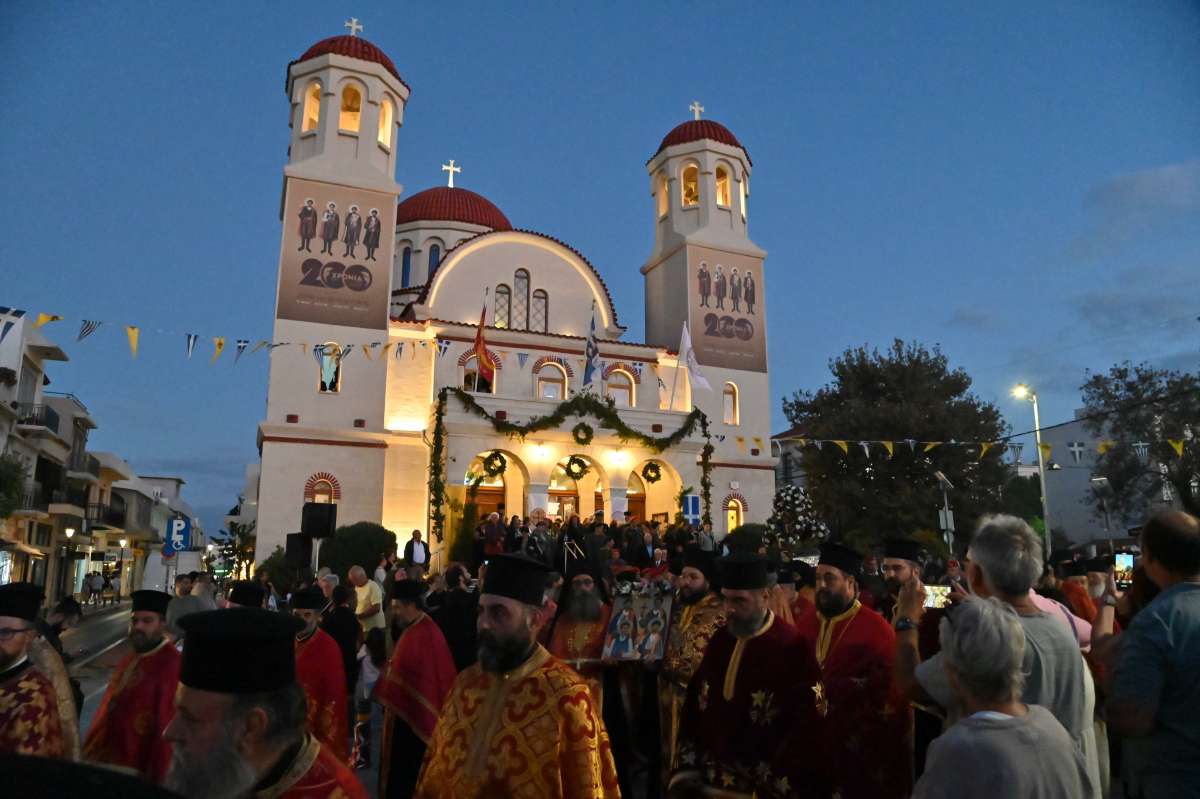 Το απόγευμα της αυτής ημέρας, πραγματοποιήθηκε ο Μεθέορτος Εσπερινός, χοροστατούντος του Σεβασμιωτάτου Μητροπολίτου Πέτρας και Χερρονήσου κ. Γερασίμου, και ακολούθησε πάνδημη Λιτάνευση των Τιμίων Καρών και της Ιεράς Εικόνος των Αγίων Τεσσάρων Νεομαρτύρων, με τη συμμετοχή και των Σεβασμιωτάτων Μητροπολιτών Ιεραπύτνης και Σητείας κ. Κυρίλλου και του Ποιμενάρχου, Μητροπολίτου Ρεθύμνης και Αυλοποτάμου κ. Προδρόμου.