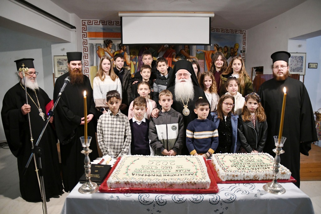 Μετά το τέλος της Θείας Λειτουργίας ο Σεβασμιώτατος ευλόγησε τη Βασιλόπιτα της Αρχιερατικής Περιφέρειας Αγιάς στο Πνευματικό Κέντρο του Ναού, όπου τα παιδιά των κατηχητικών σχολείων έψαλαν τα κάλαντα της Πρωτοχρονιάς. Στο πλαίσιο της εκδήλωσης, τίμησε τον π. Ρίζο Κομήτσα για την ανιδιοτελή διακονία του, αναφερόμενος με θερμά λόγια στον ζήλο, την ταπείνωση και τον βαθύ πόθο του για την ιερωσύνη, επισημαίνοντας ότι η πορεία του αποτελεί ζωντανή μαρτυρία αγάπης προς την Εκκλησία και τον τόπο του. Τέλος, ευχήθηκε στον Δήμαρχο Αγιάς κ. Αντώνιο Κουντάρα για την ονομαστική του εορτή, καθώς και στον Αρχιερατικό Επίτροπο Αγιάς π. Αθανάσιο Μάκρη για την αυριανή του εορτή, ευχόμενος υγεία, δύναμη και καρποφόρα διακονία.