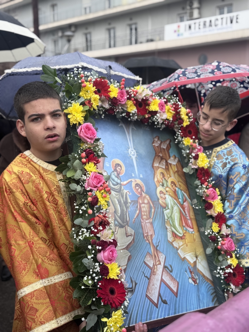 Μετά το πέρας της πανηγυρικής Θείας Λειτουργίας τελέσθηκε η Ακολουθία του Μεγάλου Αγιασμού, κατά την οποία ο Σεβασμιώτατος, στο κήρυγμά του, αναφέρθηκε στο βαθύ θεολογικό νόημα της εορτής των Θεοφανείων, υπογραμμίζοντας ότι με τη Βάπτιση του Κυρίου στον Ιορδάνη ποταμό φανερώνεται στον κόσμο το μυστήριο της Αγίας Τριάδος και αγιάζεται ολόκληρη η κτίση. Τόνισε δε ότι ο αγιασμός των υδάτων αποτελεί πρόσκληση προς τον άνθρωπο να ανανεώσει τη ζωή του εν Χριστώ και να πορευθεί με μετάνοια, πίστη και ελπίδα.