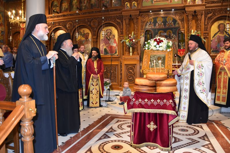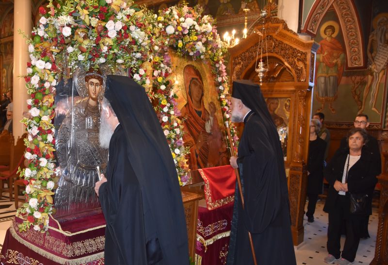 Λίγο πριν την απόλυση ο Σεβασμιώτατος κ. Χρυσόστομος συνεχάρη τον Θεοφιλέστατο κ. Ιωάννη για την παρουσία του, την συμμετοχή του στην πανήγυρη και τους εμπνευσμένους και αρίστους λόγους του. Ευχαρίστησε τον Σεβασμιώτατο Μητροπολίτη Θεσσαλονίκης, για την ευλογία που παρείχε, ώστε να φιλοξενηθεί, κατ’ αυτάς, η ι. εικόνα της Παναγίας Ελεούσης εκ της Ι. Μονής αγ. Θεοδώρας Θεσσαλονίκης. Ευχαρίστησε επίσης τον συμπαραστάτη του στην διακονία της Ι. Μητροπόλεως, Θεοφιλέστατο Επίσκοπο Σκοπέλου κ. Νικόδημο, για τη συμμετοχή του στον εορτασμό και συνεχάρη τον προϊστάμενο της Ενορίας αρχιμ. Αιμιλιανό Χρήστου, τους συνεφημερίους του και τους περί αυτούς λαϊκούς εθελοντές της επιτυχημένης διεξαγωγής των ΛΓ΄ Δημητρίων και την ετοιμασία της πανηγύρεως, ενώ ευχήθηκε πατρικά σε όσες και όσους εορτάζουν και ευχαρίστησε, για την παρουσία τους, τους αιρετούς άρχοντες και τους πολυάριθμους προσκυνητές της Παναγίας και του μυροβλήτη αγίου.