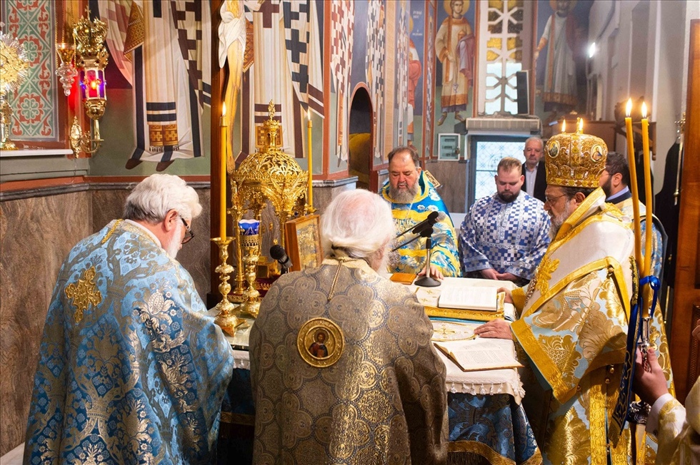 Νωρίς το πρωί, τελέστηκε ο Όρθρος και στην συνέχεια η πανηγυρική Θεία Λειτουργία προεξάρχοντος του Σεβασμιωτάτου Μητροπολίτου Μεσσηνίας κ. Χρυσοστόμου, στον Ιερό Ναό Αναλήψεως του Χριστού (δυτικά του Λιμανιού).