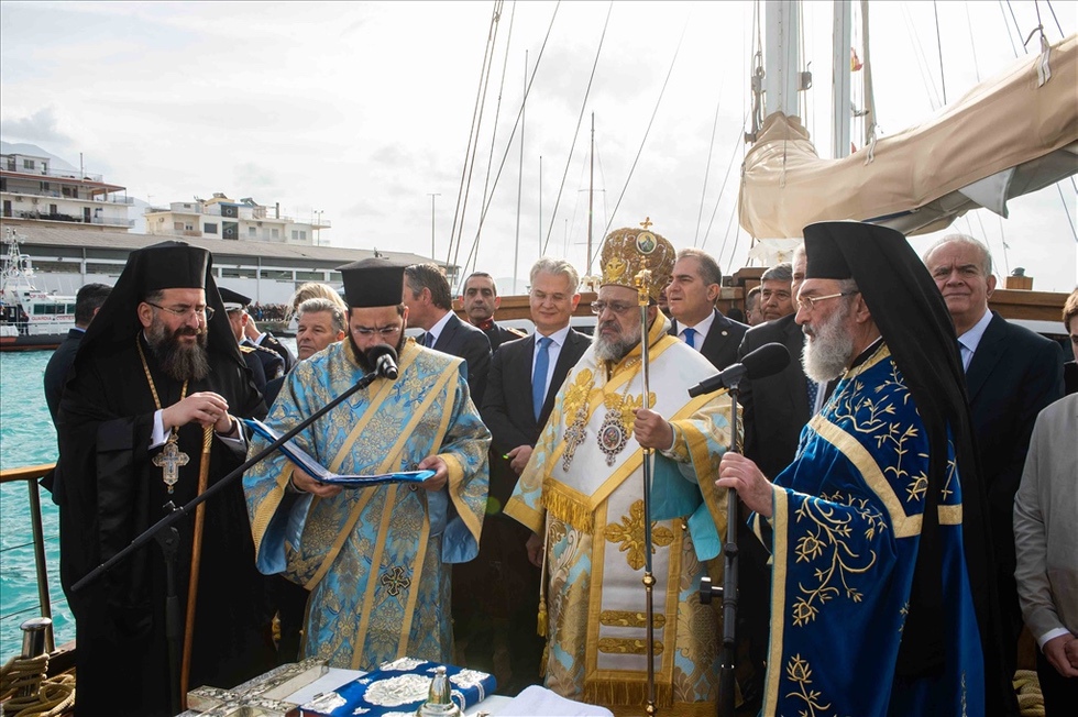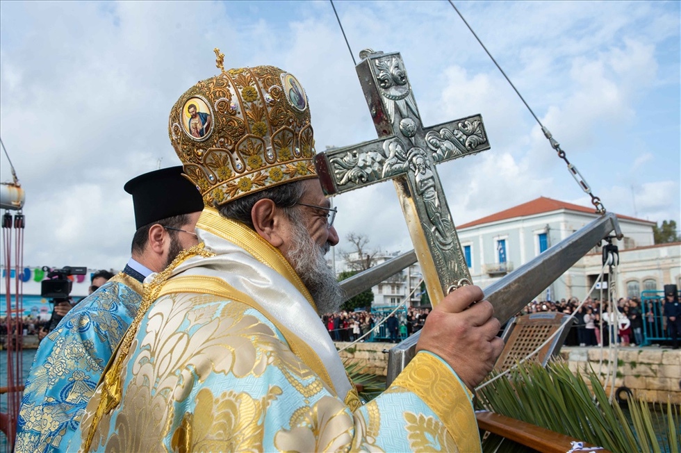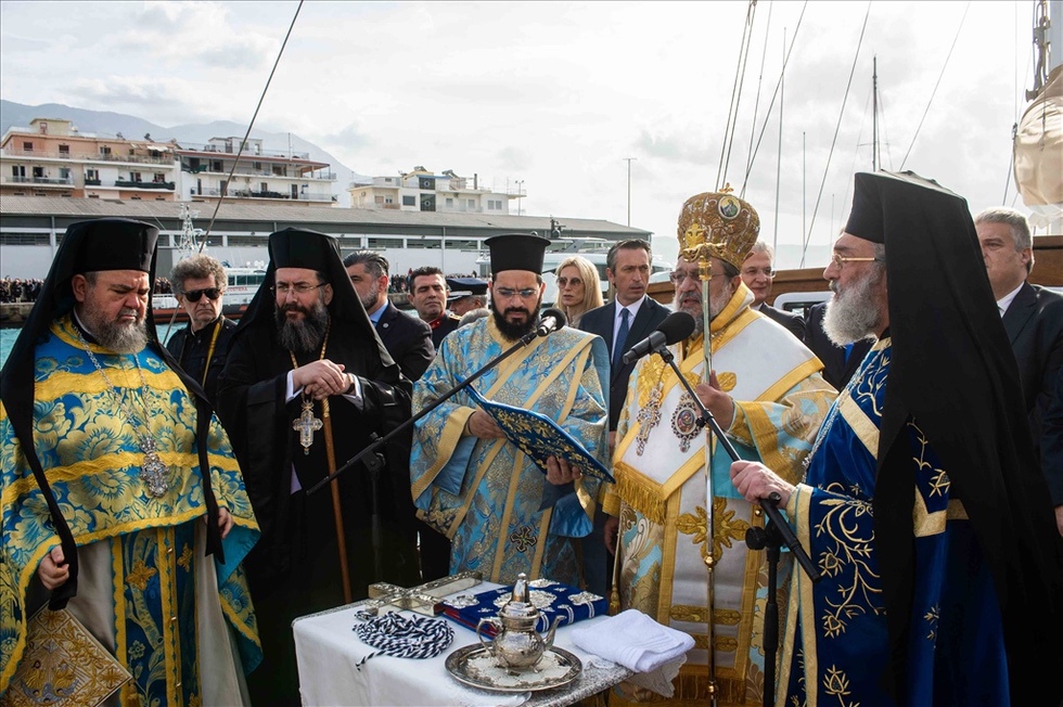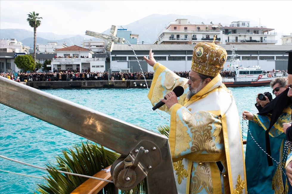 Ακολούθησε η τέλεση του Μεγάλου Αγιασμού και στη συνέχεια έλαβε χώρα η τελετή κατάδυσης του Τιμίου Σταυρού και ο αγιασμός των υδάτων στο λιμάνι της πόλεως.