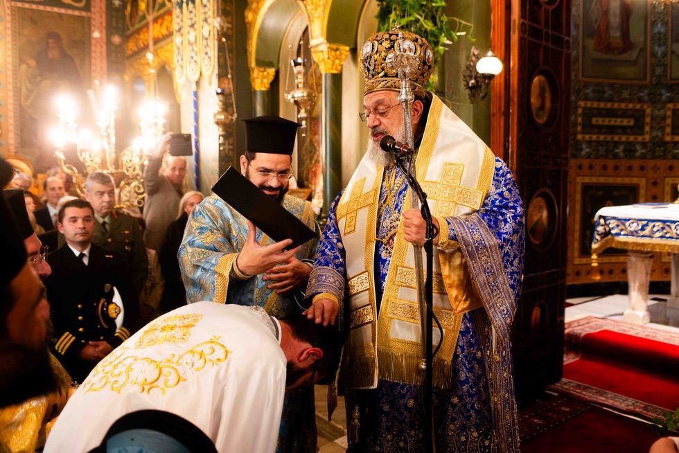 Προ του πέρατος της Θείας Λειτουργίας ο Σεβασμιώτατος χειροθέτησε στο οφφίκιο του Πρωτοπρεσβυτέρου τον π. Αντώνιο Μανουσόπουλο, εφημέριο του Ιερού Ναού Αγίου Γεωργίου Καλαμάτας, αναγνωρίζοντας το ιερατικό του ήθος και την συνέπεια που τον διακρίνουν.