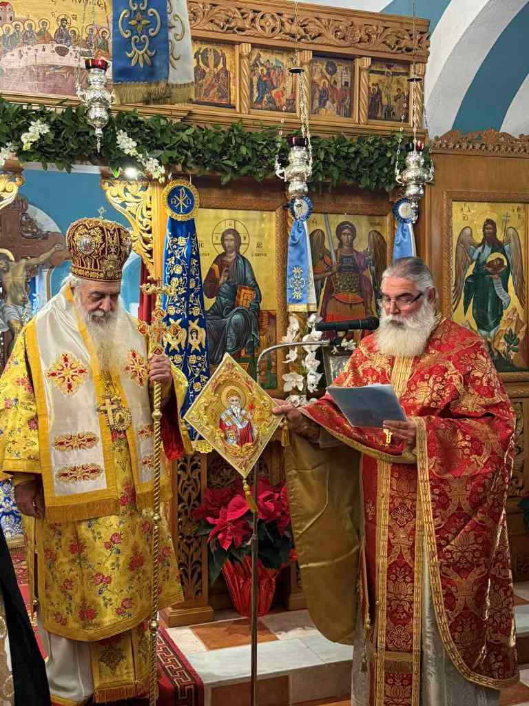 Τήν κυριώνυμη ἡμέρα τελέστηκε ὁ Ἑόρτιος Ὄρθρος καί ἡ Ἀρχιερατικὴ Θεία Λειτουργία. Τόν θείο λόγο κήρυξε ὁ Σεβασμιώτατος Μητροπολίτης μας ἀναφερόμενος στήν μορφή τοῦ Ἁγίου καί τίς πάμπολλες θαυματουργίες του. Ἐν συνεχείᾳ ἐνημέρωσε περί τῆς πορεῖας τῶν διαδικασιῶν ἀναθέσεως καί ἐνάρξεως τῶν ἐργασιῶν, τοῦ Ἱεροῦ Καθεδρικοῦ Ναοῦ, στίς ἀρχές τοῦ Νέου ἔτους.
