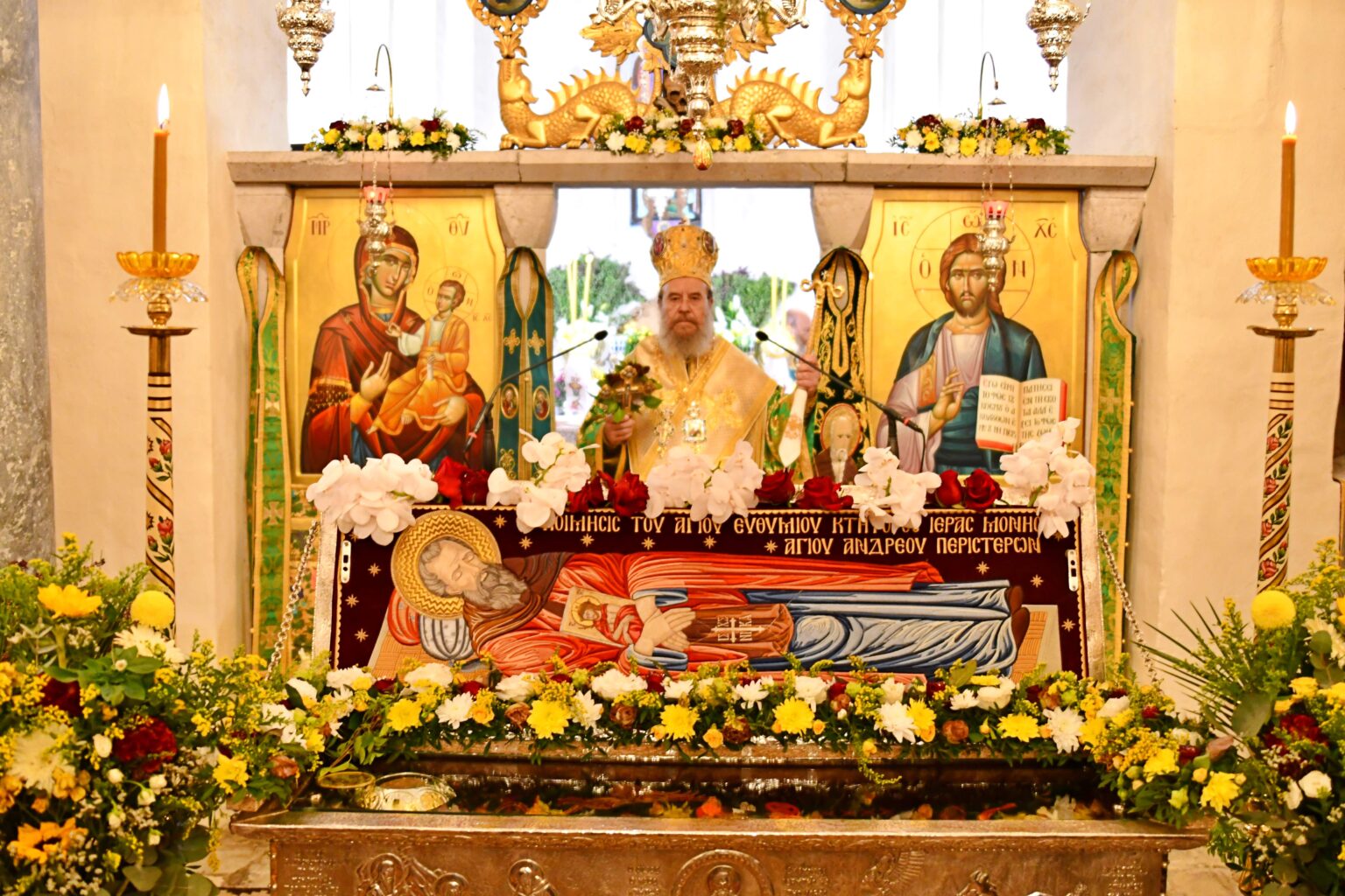 Στον προ τριετίας ανακαινισμένο και εγκαινιασμένο, παρουσία του Μακαριωτάτου Αρχιεπισκόπου Αθηνών και πάσης Ελλάδος κ.κ. Ιερωνύμου Β’, πεντάτρουλλο Ιερό Ναό του Αγίου Ανδρέα Περιστεράς, κτίσματος του 871 μ.Χ., και με μέγα θησαυρό να τον πλουτίζει τα Ιερά Λείψανα του Οσίου Ευθυμίου του Νέου μέσα στην αργυρή τους λάρνακα, προσήλθε ομοθυμαδόν ο φιλάγιος λαός της Περιστεράς και των περιχώρων για να τιμήσει τον προστάτη του που ανέδειξε ουσιαστικά τον τόπο τους στις πλαγιές του Χορτιάτη, δίπλα στη μεγαλώνυμo πόλη της Θεσσαλονίκης.