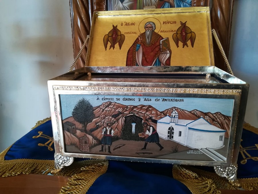 Κατανυκτικά εορτάστηκε στα Αντικύθηρα ο πολιούχος του νησιού Άγιος Μύρων ο Ιερομάρτυς και Θαυματουργός, στο παλαιό του μοναστήρι που βρίσκεται στο νησί. Των Ιερών Ακολουθιών προεξήρχε ο Σεβασμιώτατος Μητροπολίτης Κυθήρων και Αντικυθήρων κ. Σεραφείμ συμπαραστατούμενος από Ιερείς των Κυθήρων και τον Ιερέα των Αντικυθήρων π. Αντώνιο. Μελωδικά έψαλε (για 20ή συνεχή χρονιά) χορός ψαλτών από την Αθήνα υπό τη διεύθυνση του Πρωτοψάλτου κ. Ιωάννου Τσούνη, ενώ τιμές απέδωσε άγημα του Λιμενικού Σώματος υπό τον Λιμενάρχη Νεαπόλεως Βοιών Πλωτάρχη ΛΣ κ. Μοτσάκο. Τον εορτασμό τίμησαν επίσης με την παρουσία τους οι Βουλευτές της Ν.Δ. στην Ά Πειραιά και Νήσων κ. Χριστόφορος Μπουτσικάκης και κ. Νίκος Μανωλάκος και ο Δήμαρχος Κυθήρων και Αντικυθήρων κ. Ευστράτιος Χαρχαλάκης με μέλη του Δ.Σ.