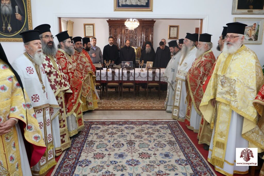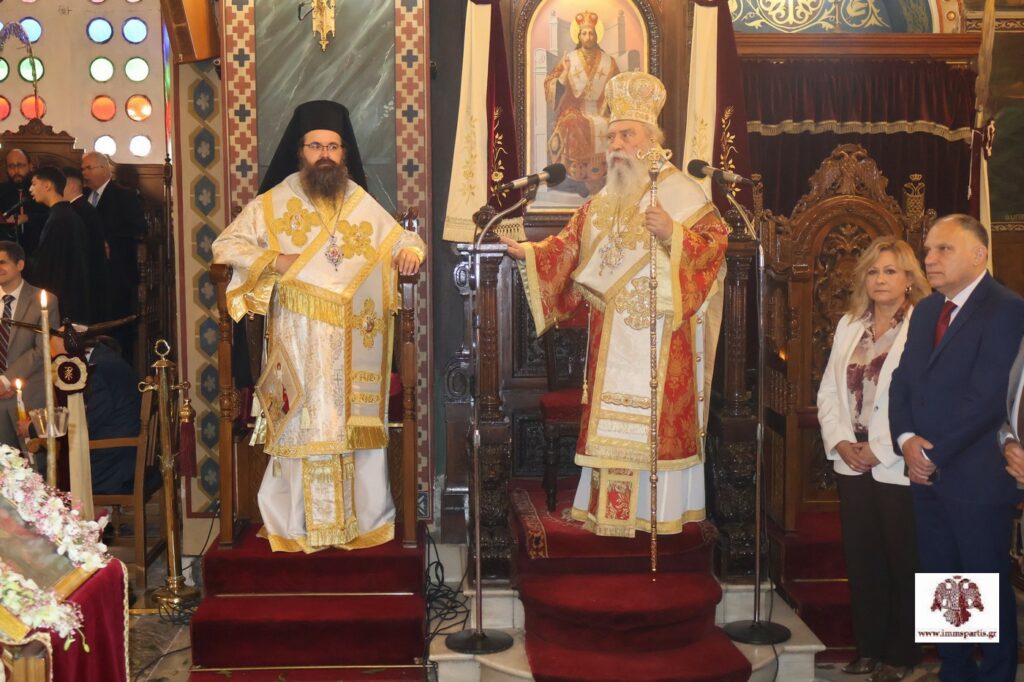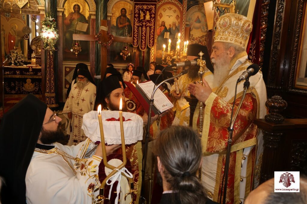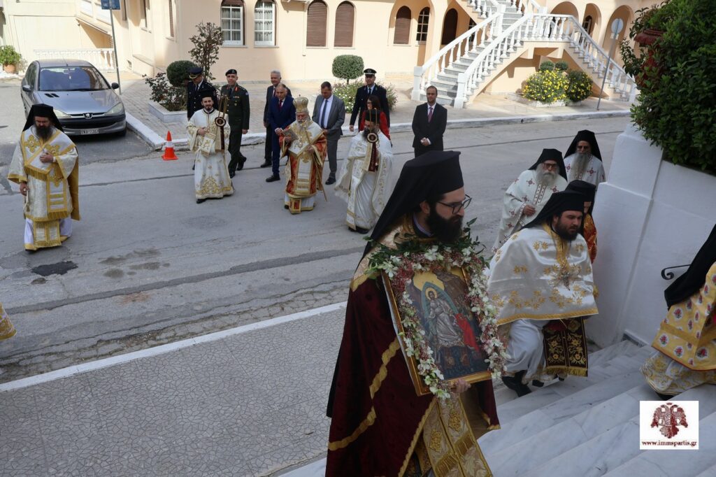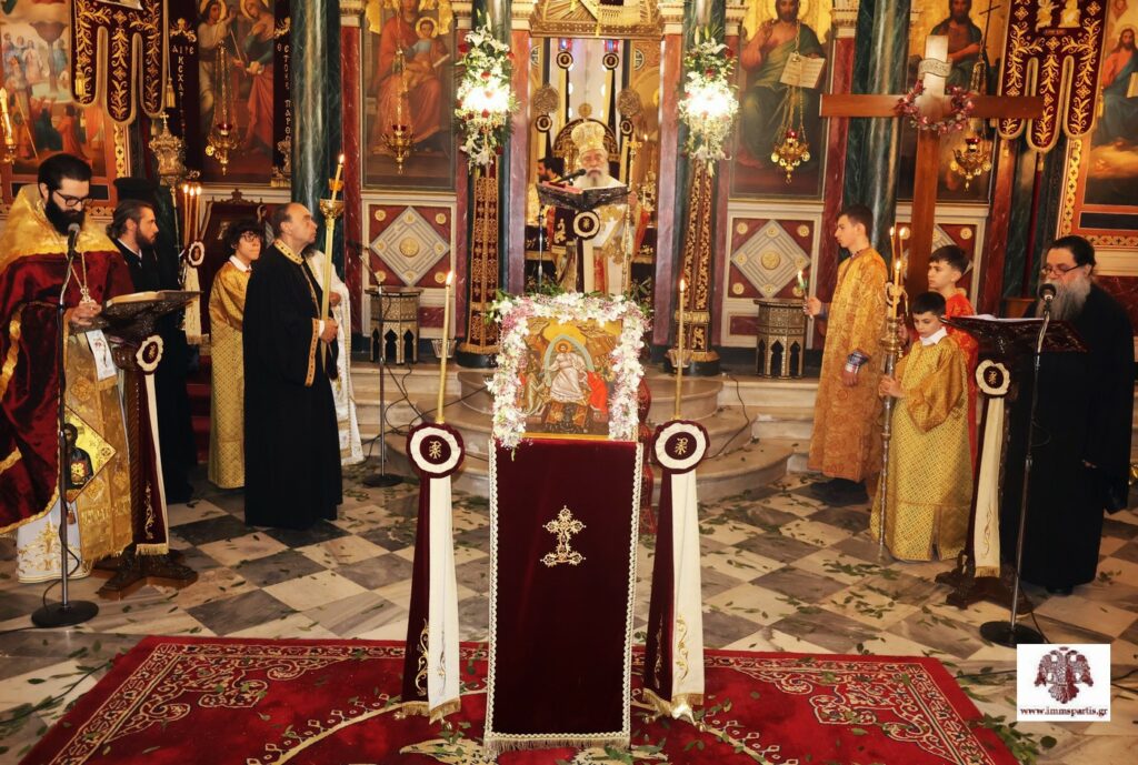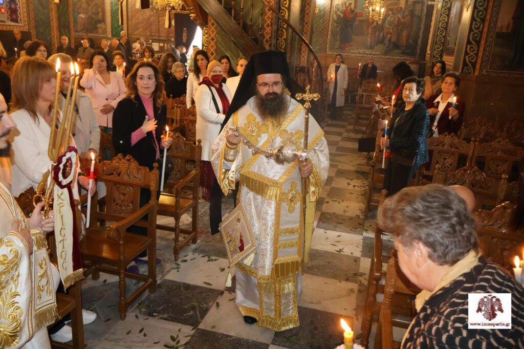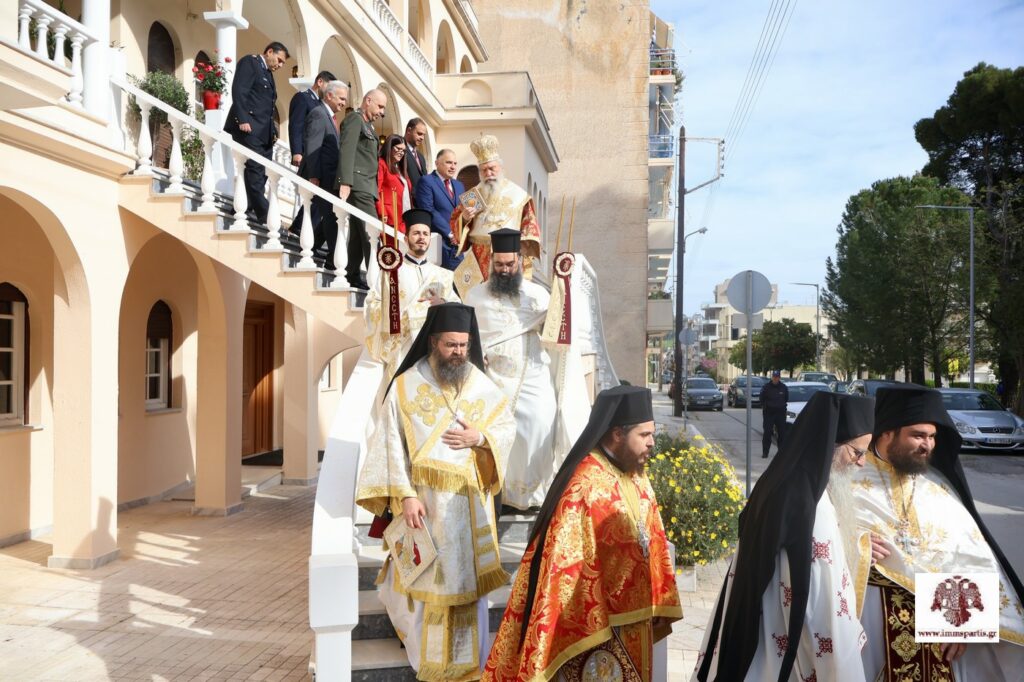 Αρχικά σήμαναν οι καμπάνες των Ιερών Ναών της πόλης παρατεταμένα. Ακολούθως, στο Επισκοπείο, έλαβε χώρα η αμφιοφορία του Σεβασμιωτάτου Μητροπολίτη μας κ. Ευσταθίου, σύμφωνα με το Βυζαντινό τυπικό, παρουσία του Θεοφιλεστάτου Επισκόπου Λακεδαιμονίας κ. Θεοφίλου, πλειάδας κληρικών της τοπικής μας Εκκλησίας, τοπικών αρχόντων και εκπροσώπων των Σωμάτων Ασφαλείας. Στη συνέχεια, σχηματίσθηκε λιτανευτική πομπή, η οποία κατέληξε στον Μητροπολιτικό Ναό Ευαγγελιστρίας, όπου τελέσθηκε ο Εσπερινός της Αγάπης.