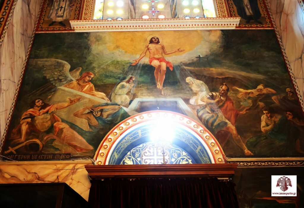 Φέτος, λόγω των εργασιών που εκτελούνται στον περιβάλλοντα χώρο μέσω της μεγάλης δωρεάς του ευπατρίδη κ. Αθανασίου Μαρτίνου, δεν πραγματοποιήθηκε η καθιερωμένη λιτάνευση της ιερής εικόνας της Αναστάσεως γύρωθεν του Ναού. Η θρησκευτική τελετή επισφραγίστηκε με τον Σεβασμιώτατο Μητροπολίτη μας να διανέμει, ως είθισται, τα πασχαλινά αυγά ανταλάσσοντας ευχές με τους παρευρισκόμενους πιστούς σε χαρμόσυνο κλίμα.