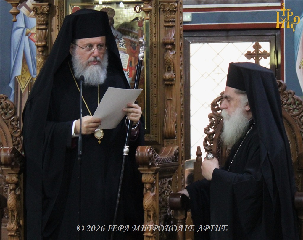 Τον Επίσκοπο Ταλαντίου κ. Θεολόγο προσεφώνησε ο Σεβασμιώτατος Μητροπολίτης Άρτης κ. Καλλίνικος, ο οποίος εξέφρασε θερμές ευχαριστίες τόσο προς τον ίδιο τον Θεοφιλέστατο, όσο και προς τον Μακαριώτατο Αρχιεπίσκοπο Αθηνών και πάσης Ελλάδος κ. Ιερώνυμο, για την ευλογία που έδωσε ώστε να επισκεφθεί ο Άγιος Ταλαντίου την Άρτα και να στηρίξει πνευματικά το ποίμνιο.