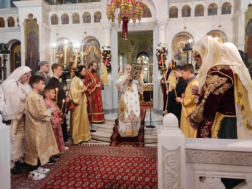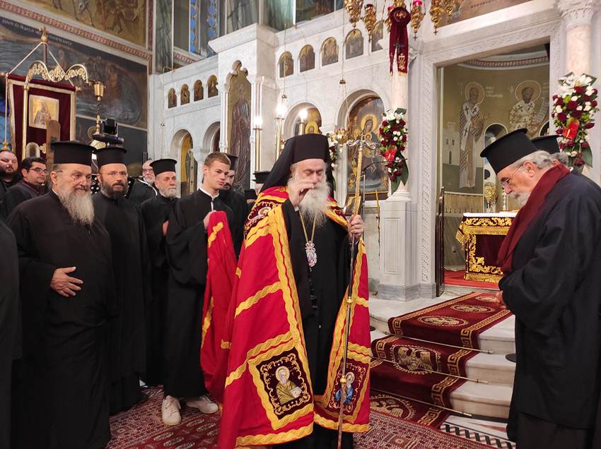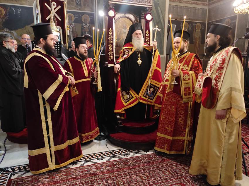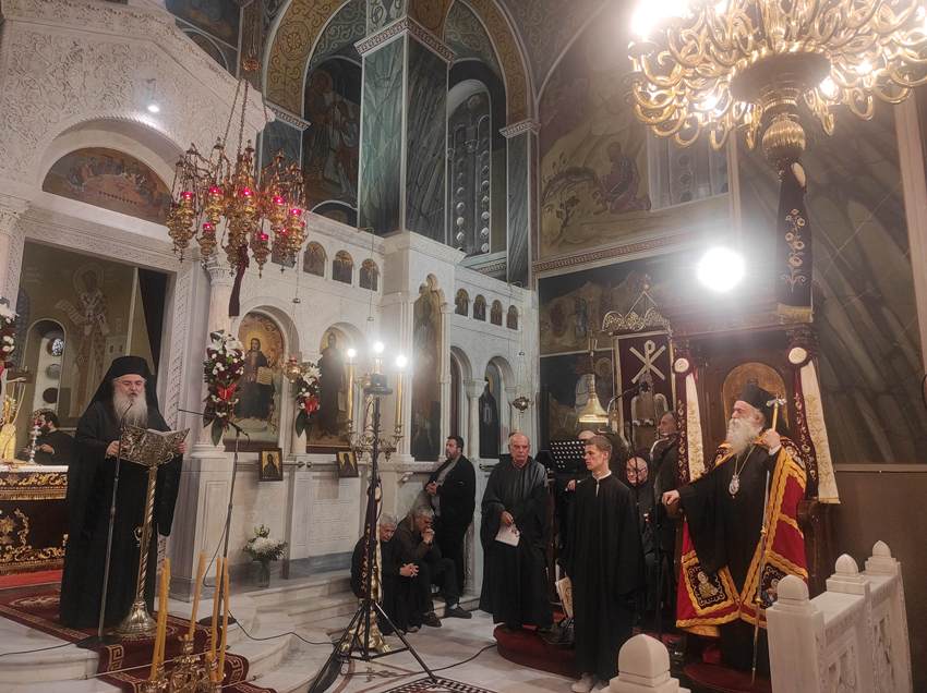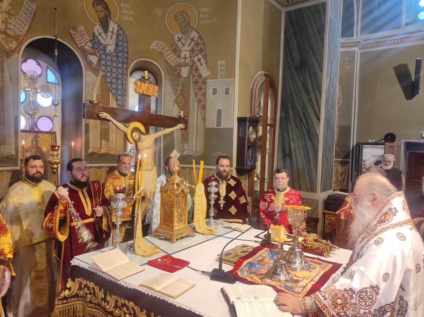 Ανήμερα της εορτής Τετάρτη 11 Φεβρουαρίου 2026, τελέσθηκε ο Όρθρος και η Πανηγυρική Αρχιερατική Θ. Λειτουργία, προεξάρχοντος του Σεβ. Μητροπολίτου κ. Παύλου πλαισιωμένου από τον Πανοσ. Αρχιμ. π. Αμβρόσιο Γκουρβέλο, εκ της Ι. Μητροπόλεως Πατρών, τον Ιεροκήρυκα της Ι. Μητροπόλεως Κορίνθου Πανοσ. Αρχιμ. π. Άνθιμο Παπαλεξόπουλο και πλήθους Ιερέων εκ των Αρχιερατικών Περιφερειών Ξυλοκάστρου και Ευρωστίνης. Προ του πέρατος της Θ. Λειτουργίας ο Σεβασμιώτατος χειροθέτησε Αναγνώστη τον Δεξιό Ιεροψάλτη του Ι. Ναού κ. Λεωνίδα Δρακόπουλο, δίδοντάς του εκ μέρους του Εκκλησιαστικού Συμβουλίου μια τιμητική πλακέτα για την τεσσαρανταετή διακονία του.