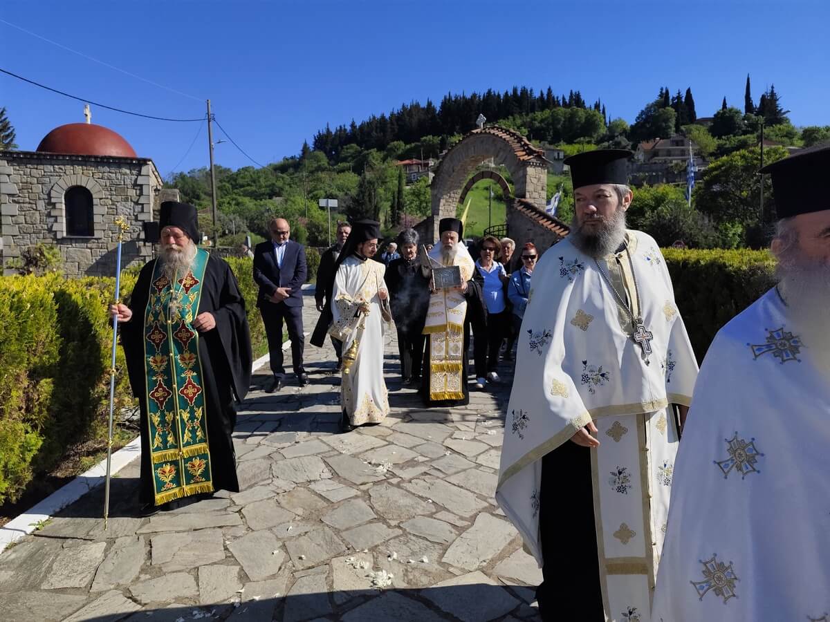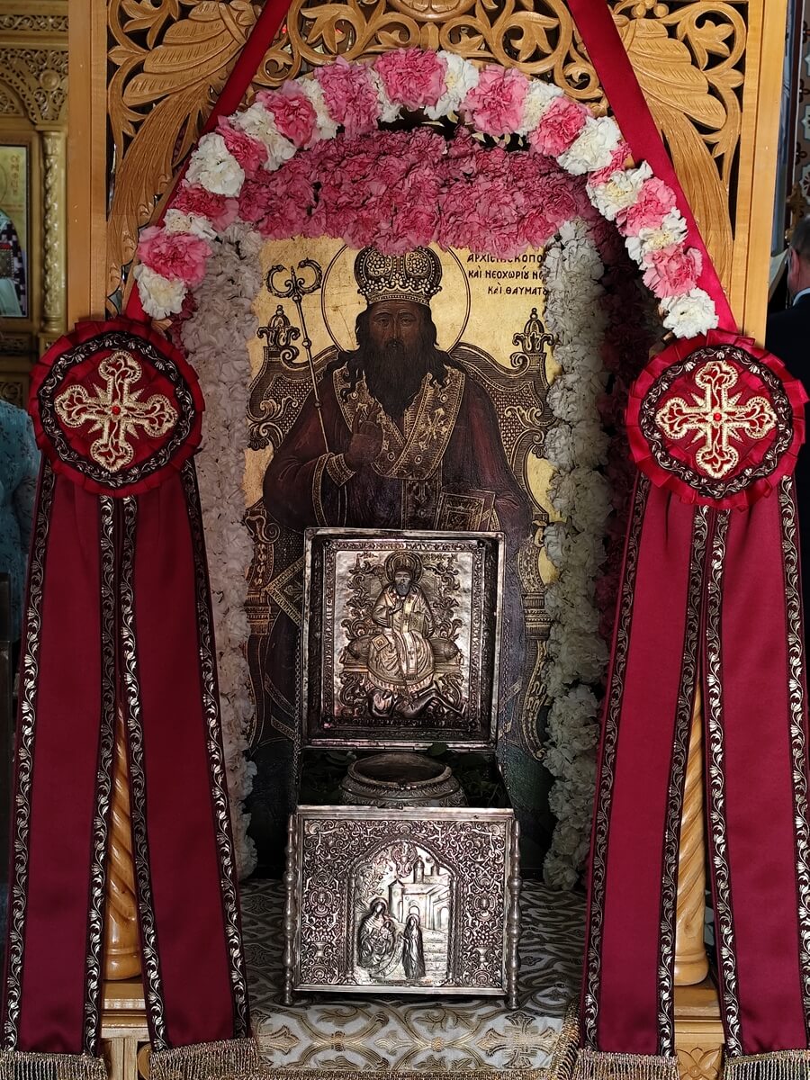 Στις 5 το απόγευμα πραγματοποιήθηκε η μετακομιδή της τιμίας κάρας του Αγίου στον Ενοριακό Ιερό Ναό Αγίου Σεραφείμ Φαναρίου, όπου τελέσθηκε ο πανηγυρικός Αρχιερατικός Εσπερινός, χοροστατούντος του Μητροπολίτου μας κ. Τιμοθέου. Ακολούθησε προσκύνηση και δέηση στον τόπο του μαρτυρίου του Αγίου, μέσα σε κλίμα συγκίνησης και ευλάβειας.