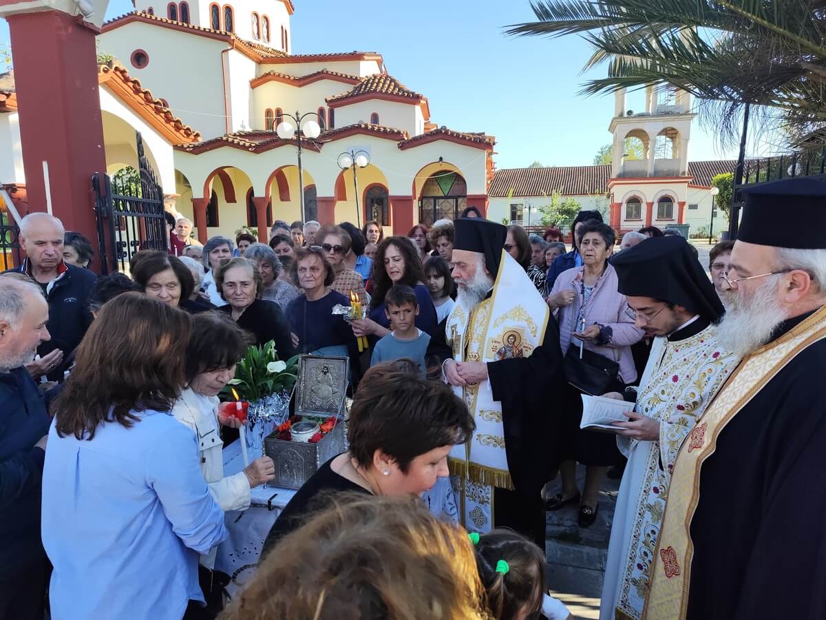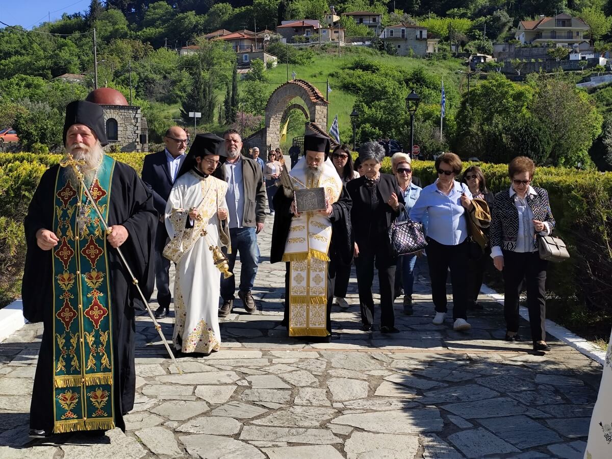 Η πομπή της μεταφοράς συνέχισε προς την πόλη της Καρδίτσας, με ενδιάμεσες στάσεις στο Παλαιοκλήσι και έξω από τον Ιερό Ναό Αγίου Δημητρίου.