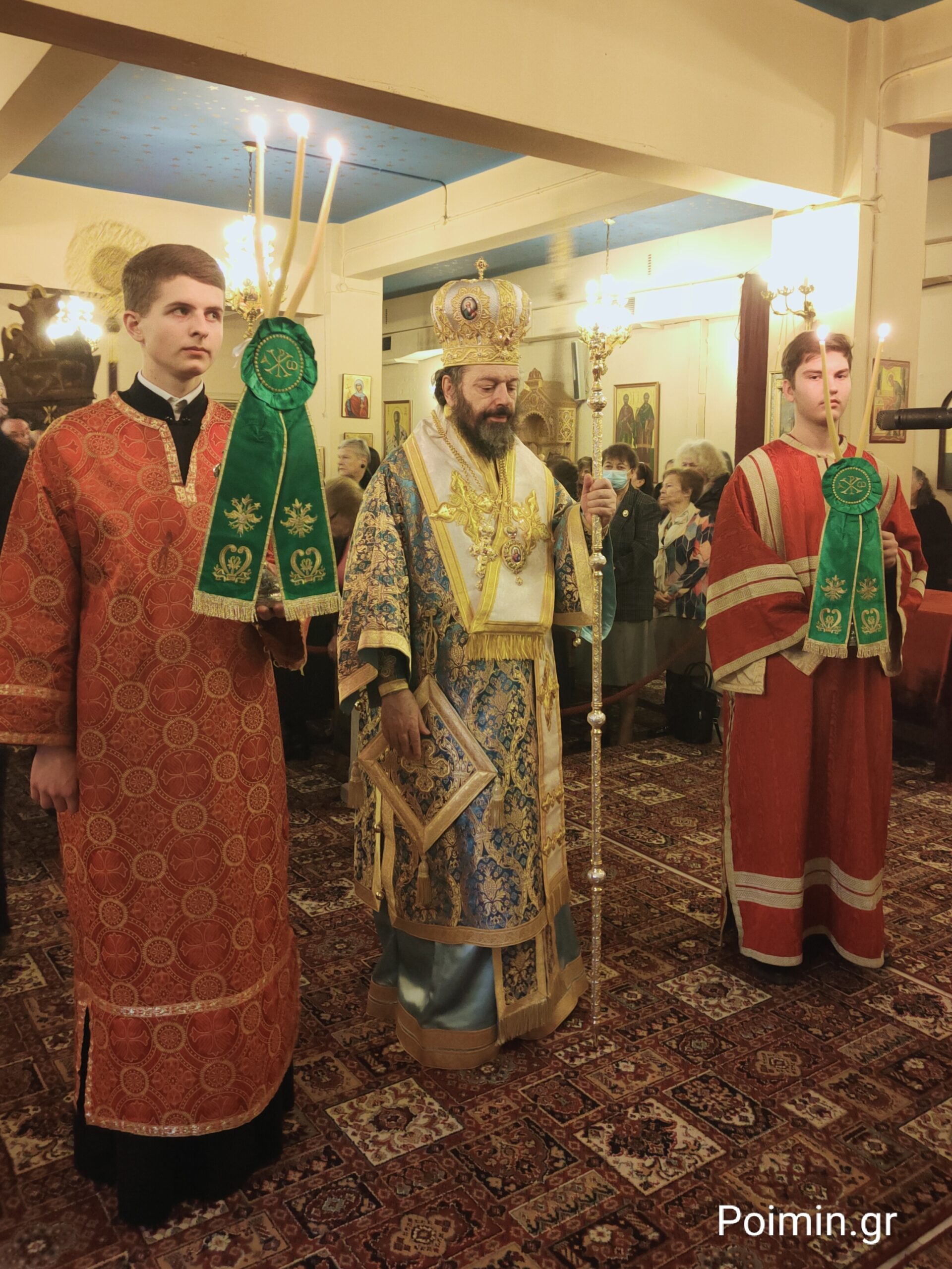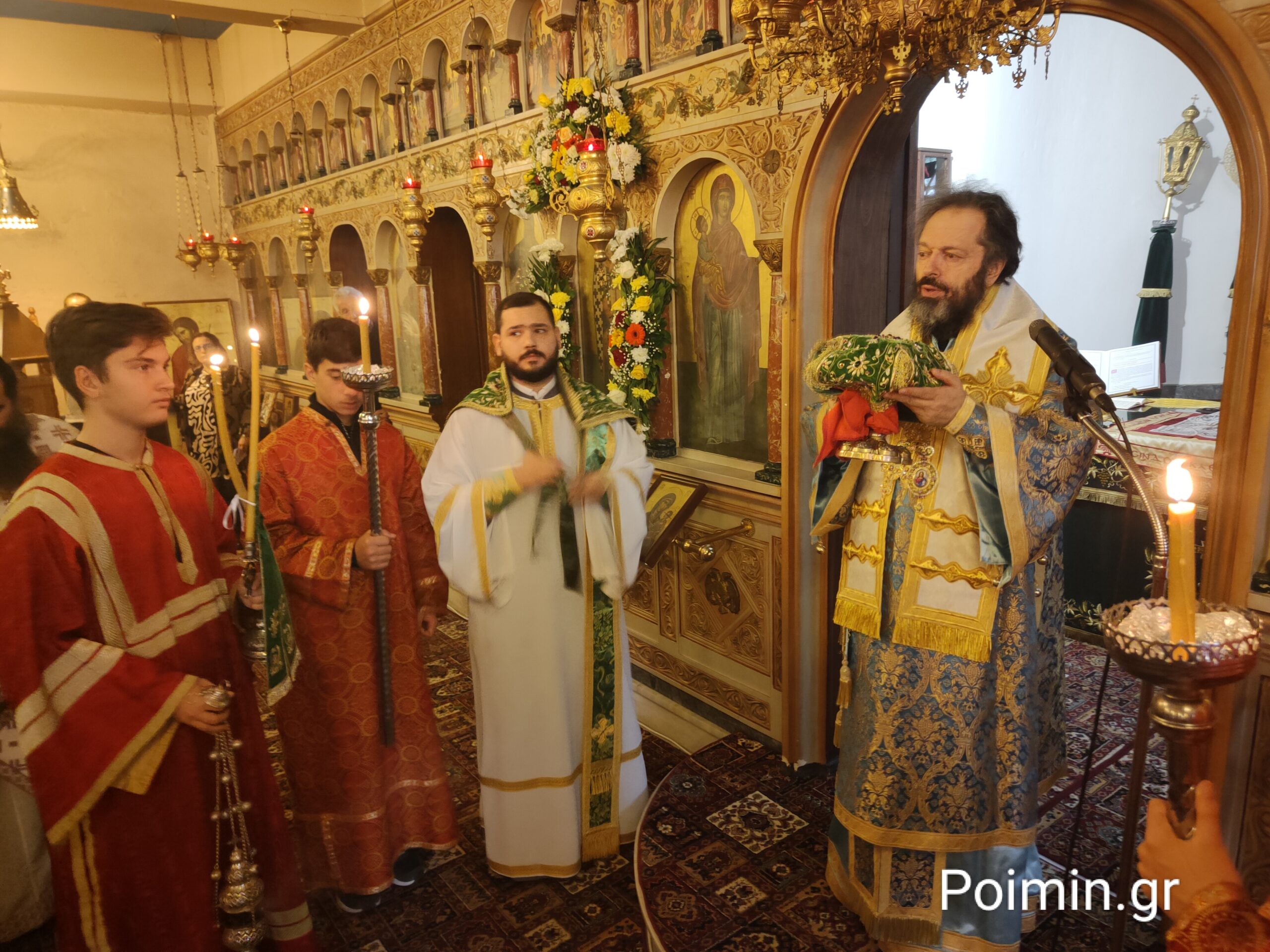 Αφ’ εσπέρας της εορτής τελέστηκε ο Μέγας Εσπερινός, χοροστατούντος του Σεβασμιωτάτου Μητροπολίτου Κορίνθου κ. Παύλου, ο οποίος απηύθυνε λόγους πνευματικής οικοδομής προς το εκκλησίασμα.