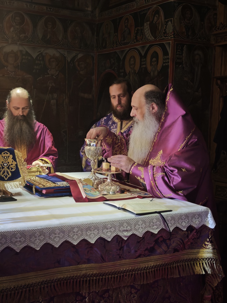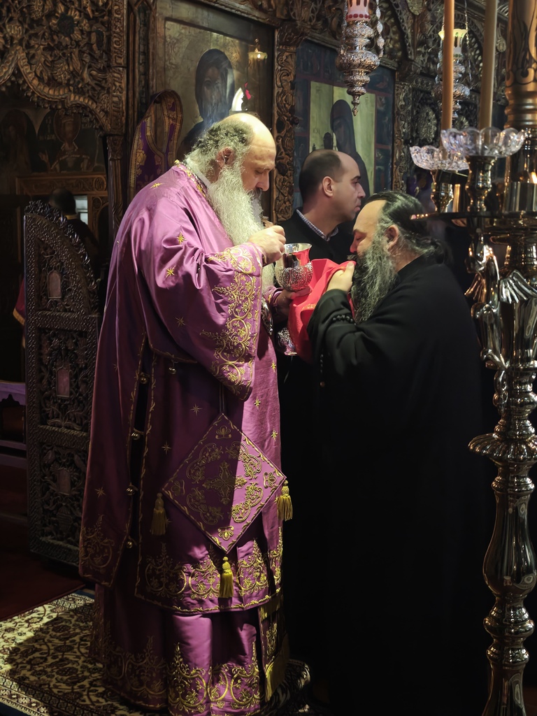 Ο κ. Θεόκλητος τέλεσε την χαρακτηριστικότερη ακολουθία της περιόδου, την θεία Λειτουργία των Προηγιασμένων Τιμίων Δώρων, στο Καθολικό της Ιεράς Μονής της Μεταμορφώσεως του Σωτήρος Μεγάλου Μετεώρου, με την συμπροσευχητική συμμετοχή του Σεβ. Μητροπολίτου Θεσσαλιώτιδος και Φαναριοφερσάλων κ. Τιμοθέου, ο οποίος αυθόρμητα έσπευσε να ευχηθεί στον Μητροπολίτη Σταγών και Μετεώρων.
