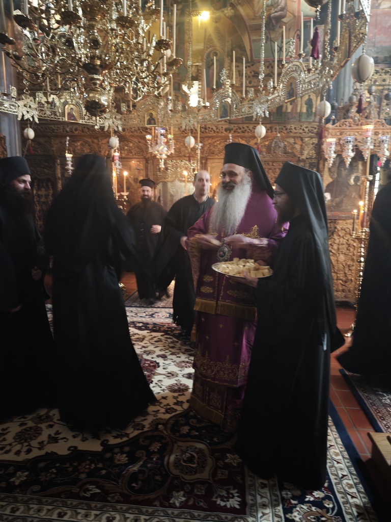 Στην ακολουθία συμμετείχαν προσευχητικά οι Ηγούμενοι των Ιερών Μονών της Μητροπόλεώς μας, Ιερείς,Ιερομόναχοι και Μοναχοί, οι οποίοι ευχήθηκαν στον Ποιμενάρχη τους όπως ο Θεός του δίνει μακροημέρευση και υγεία επ’ αγαθώ του εμπιστευθέντος αυτώ ποιμνίου.