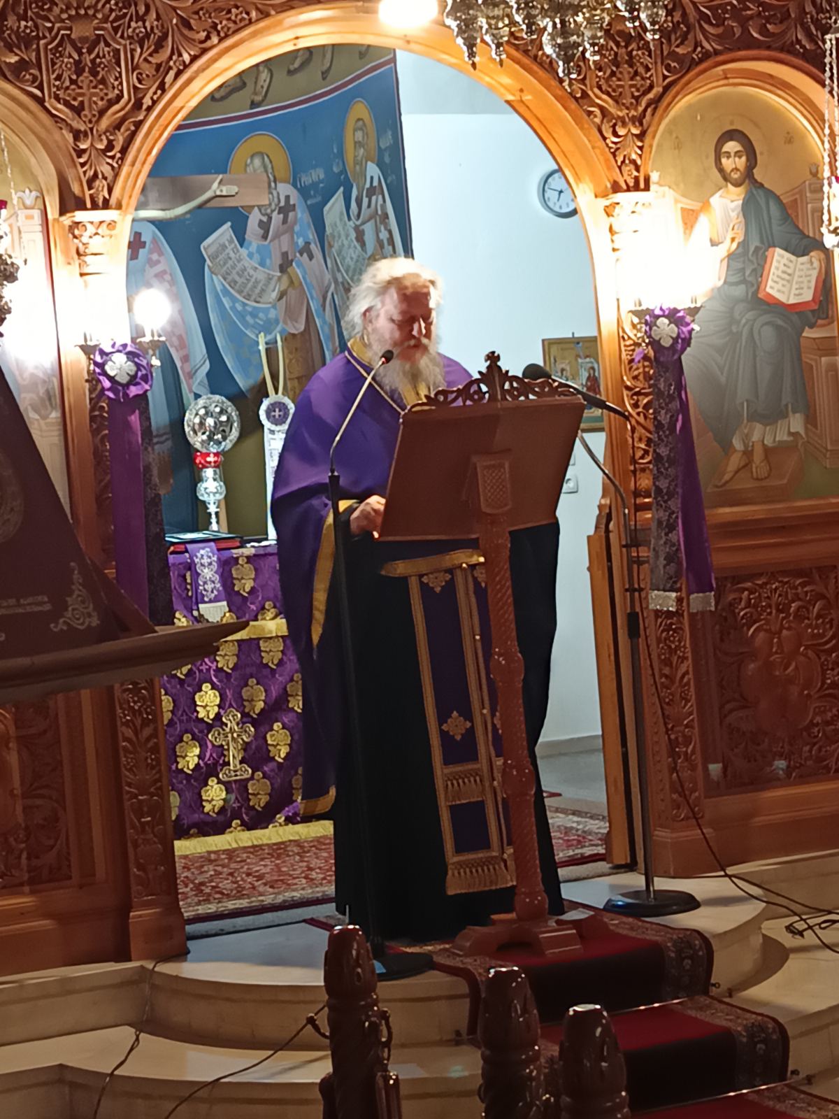 Μετά το πέρας της Ακολουθίας, ο προσκεκλημένος ομιλητής Αιδεσιμολογιώτατος Πρωτοπρεσβύτερος π. Θεμιστοκλής Χριστοδούλου κληρικός της Ιεράς Αρχιεπισκοπής Αθηνών, ανέπτυξε θέμα με βασικό θεολογικό πυλώνα τον Τίμιο και Ζωοποιό Σταυρό στη λειτουργική ζωή της Εκκλησίας και στην καθημερινότητα των πιστών, αναδεικνύοντας τη βαθιά θεολογική και πνευματική του σημασία ως σημείου θυσίας, ελπίδος και σωτηρίας για τον άνθρωπο.