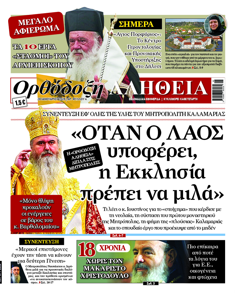 Η «Ορθόδοξη Αλήθεια» συνεχίζει να υπηρετεί τον λόγο της πίστης, της ευθύνης και της αλήθειας, φωτίζοντας τα μεγάλα πνευματικά, κοινωνικά και εθνικά ζητήματα της εποχής.