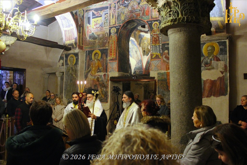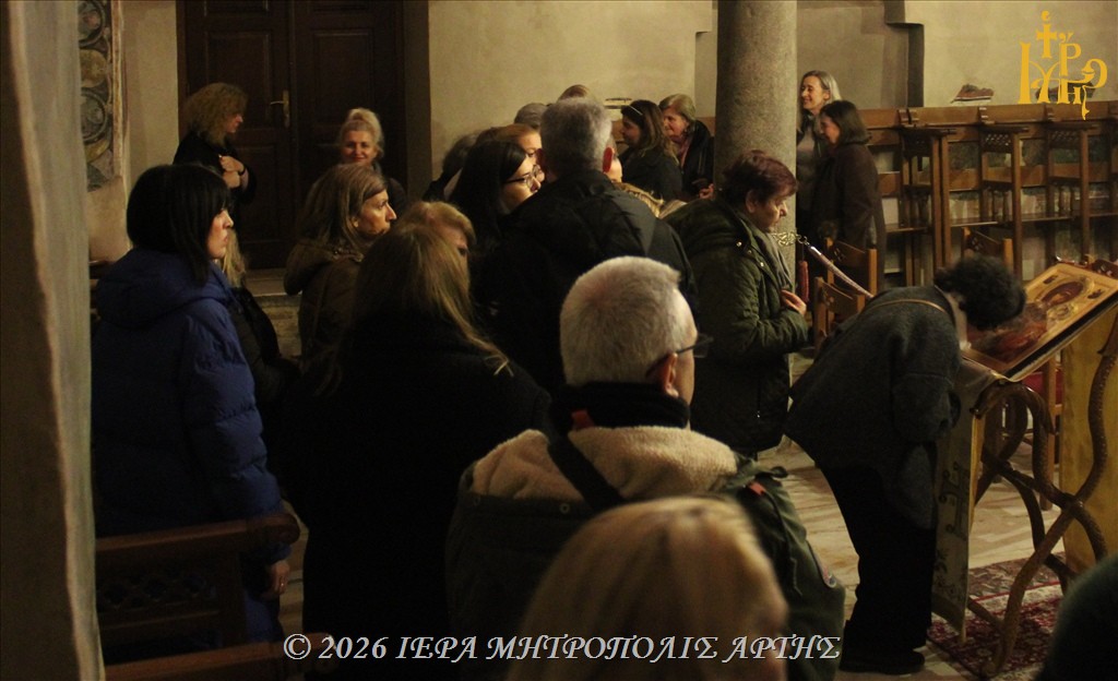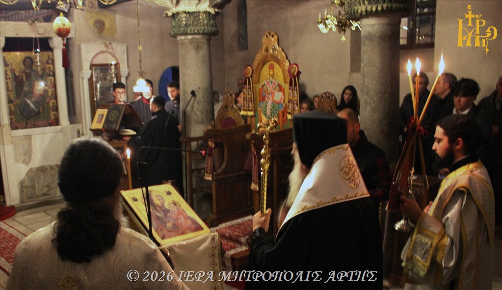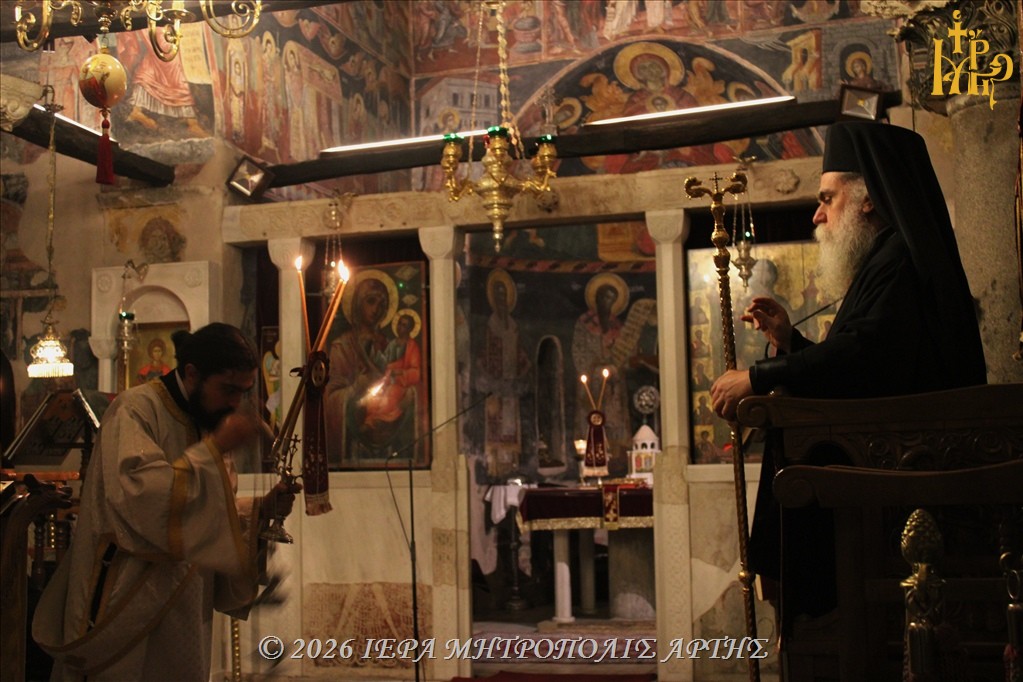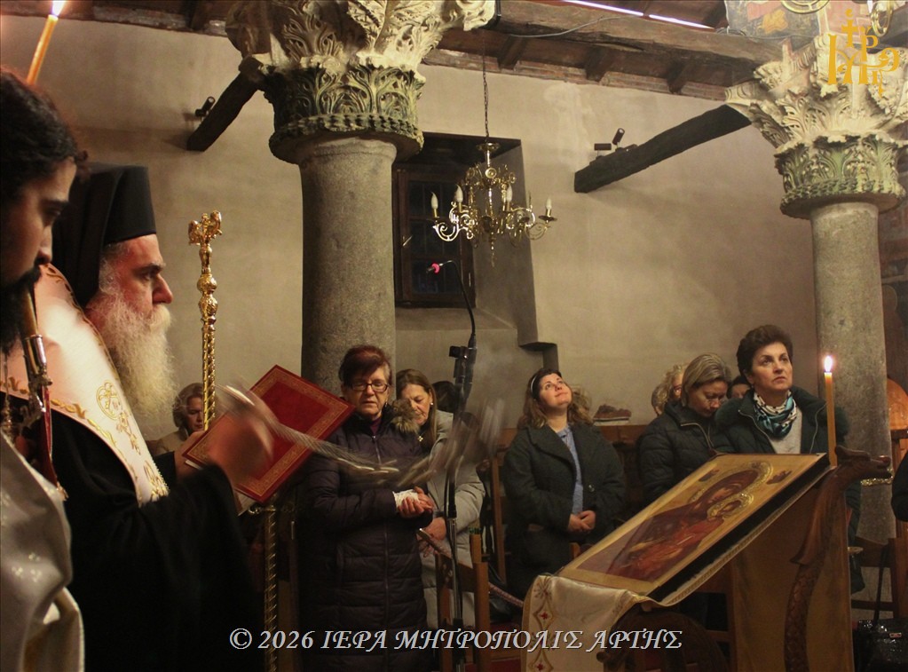 Την Παρασκευή 27 Φεβρουαρίου 2026, το απόγευμα, στον βυζαντινό Ιερό Ναό της Αγίας Θεοδώρας, της Βασιλίσσης και Πολιούχου Άρτης, ετελέσθη η Ακολουθία της Α’ Στάσεως των Χαιρετισμών προς την Υπεραγία Θεοτόκο, χοροστατούντος του Σεβασμιωτάτου Μητροπολίτου Άρτης κ. Καλλινίκου.