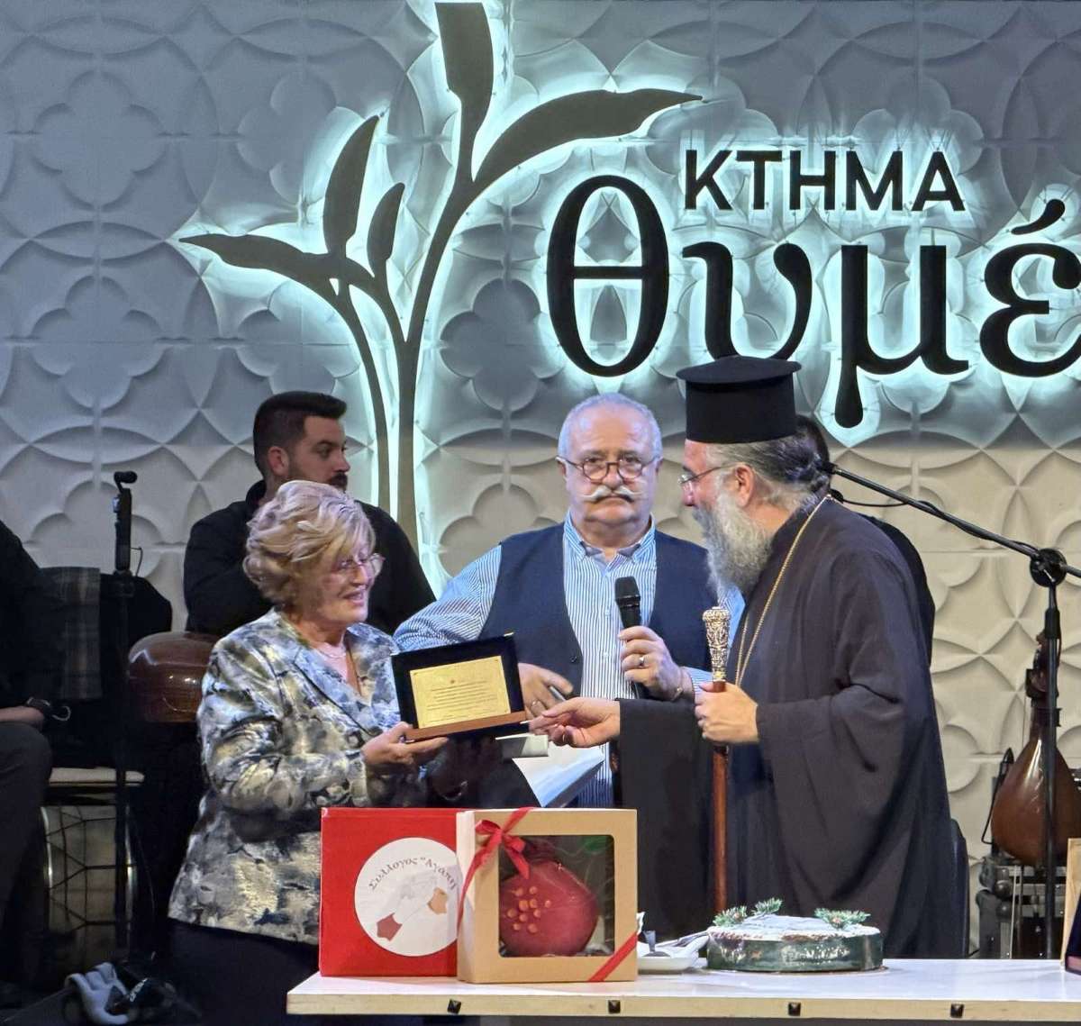 Ιδιαίτερα ο Σεβασμιώτατος ευχαρίστησε τον Γενικό Διευθυντή του Συλλόγου, ιατρό κ. Εμμανουήλ Ραπτάκη, για όλη τη μέριμνα της προετοιμασίας και του συντονισμού της εκδήλωσης αυτής, κατά την οποία τιμήθηκαν η εταιρεία Qualco Foundation, για την δωρεά δύο αυτοκινήτων προς το Σύλλογο «ΑΓΑΠΗ», και ο καταξιωμένος Κρητικός καλλιτέχνης κ. Γρηγόρης Σαμόλης, ο οποίος, μαζί με το εκλεκτό του συγκρότημα, γέμισε με κρητικούς ήχους τη βραδυά.