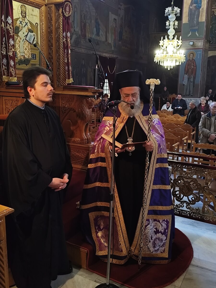 Το απόγευμα της Μεγάλης Δευτέρας 6 Απριλίου 2026, ο Σεβασμιώτατος Μητροπολίτης μας κ. Τιμόθεος χοροστάτησε με κατάνυξη στην ακολουθία του Νυμφίου, η οποία τελέσθηκε στον Ιερό Ναό Αγίου Γεωργίου Καρδίτσης, μέσα σε ατμόσφαιρα βαθιάς πνευματικότητας και προσευχής.