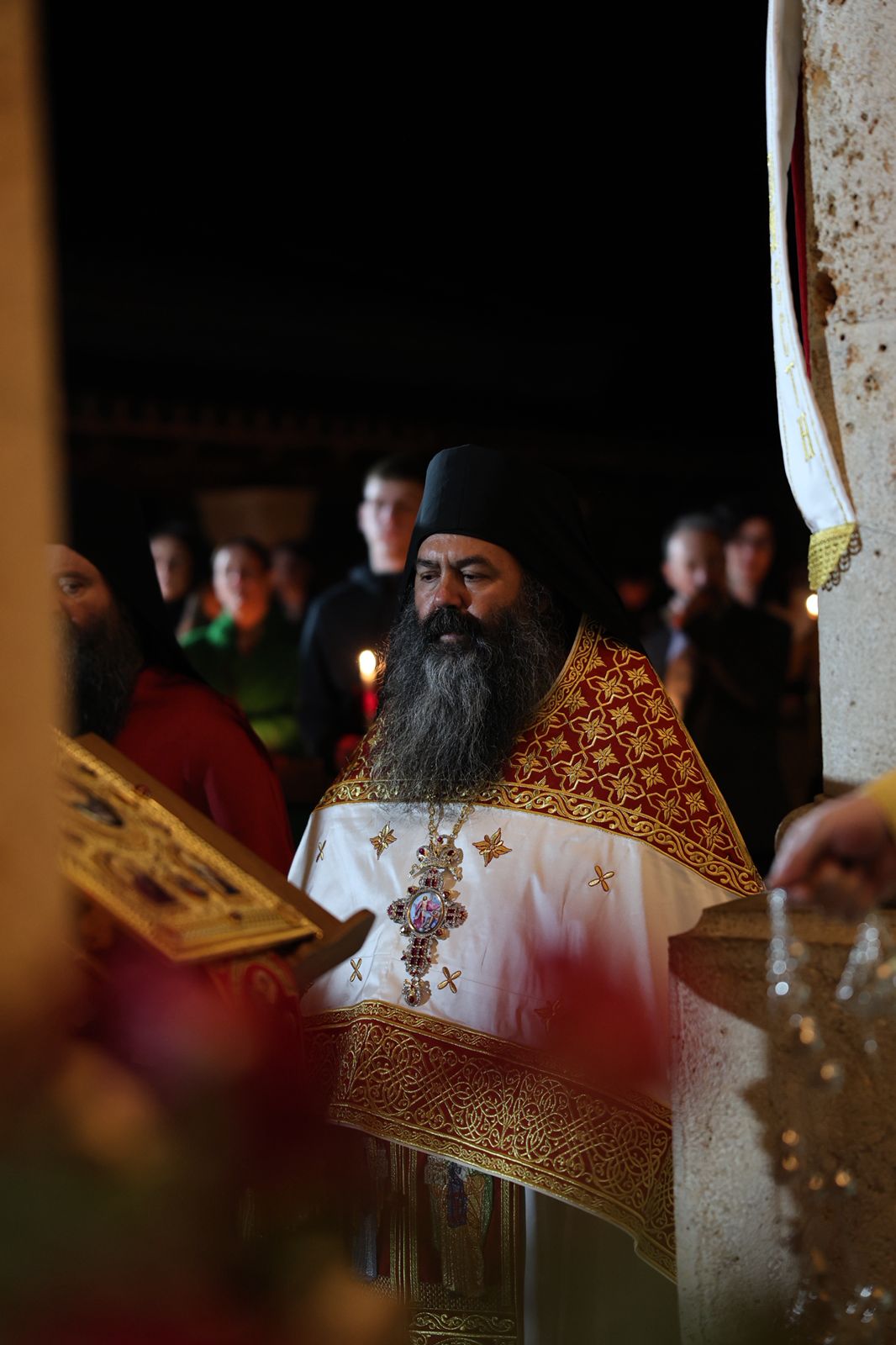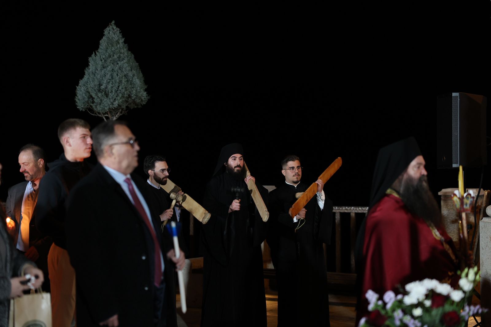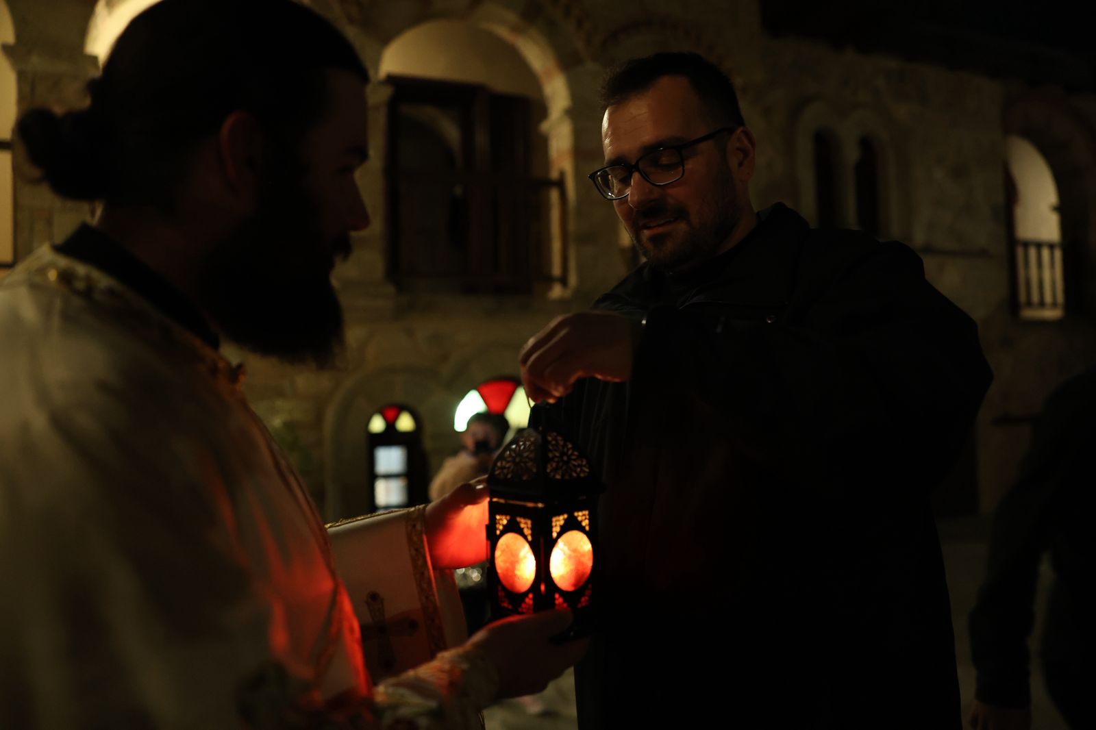 Ιδιαίτερη στιγμή αποτέλεσε η ομιλία του Καθηγουμένου της Μονής, ο οποίος ευχήθηκε το ανέσπερο και ακατάλυτο Φως της Αναστάσεως να καταυγάζει τα βάθη των ψυχών, να συντρίβει το σκότος της φθοράς και της απελπισίας και η νίκη του Αναστάντος Χριστού επί του θανάτου να γίνεται βίωμα ζωντανό, ανακαινίζοντας τον άνθρωπο «εκ δόξης εις δόξαν» και οδηγώντας τον στην κοινωνία της αιωνίου ζωής.