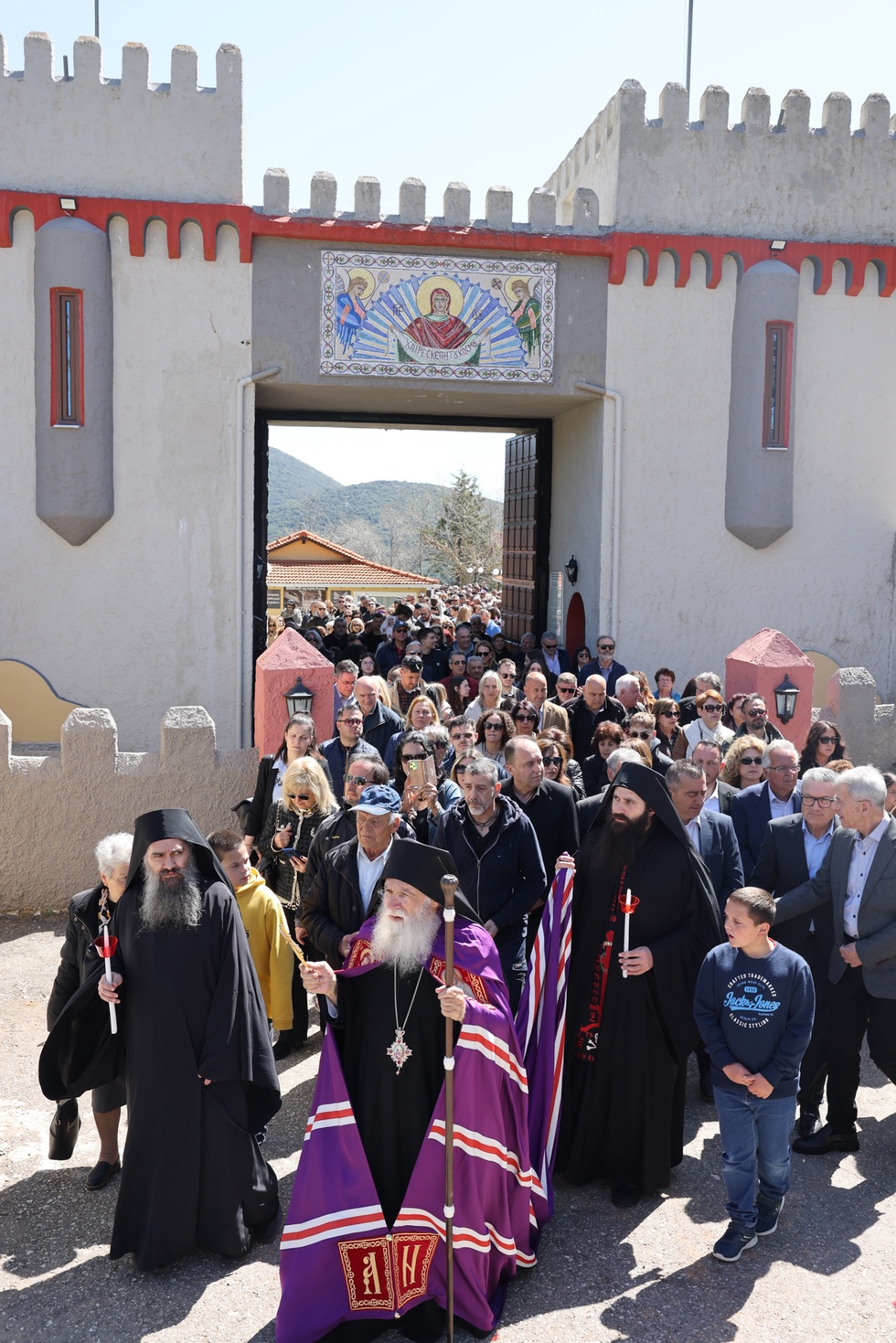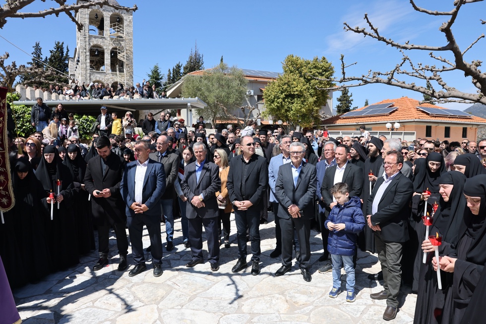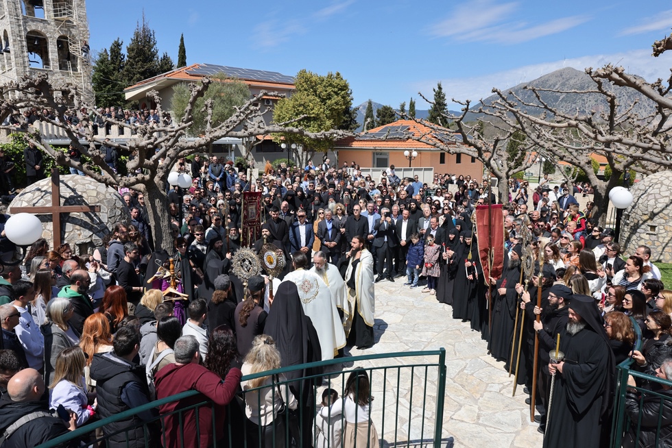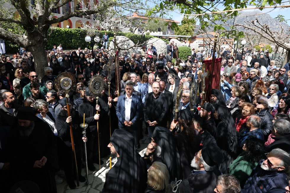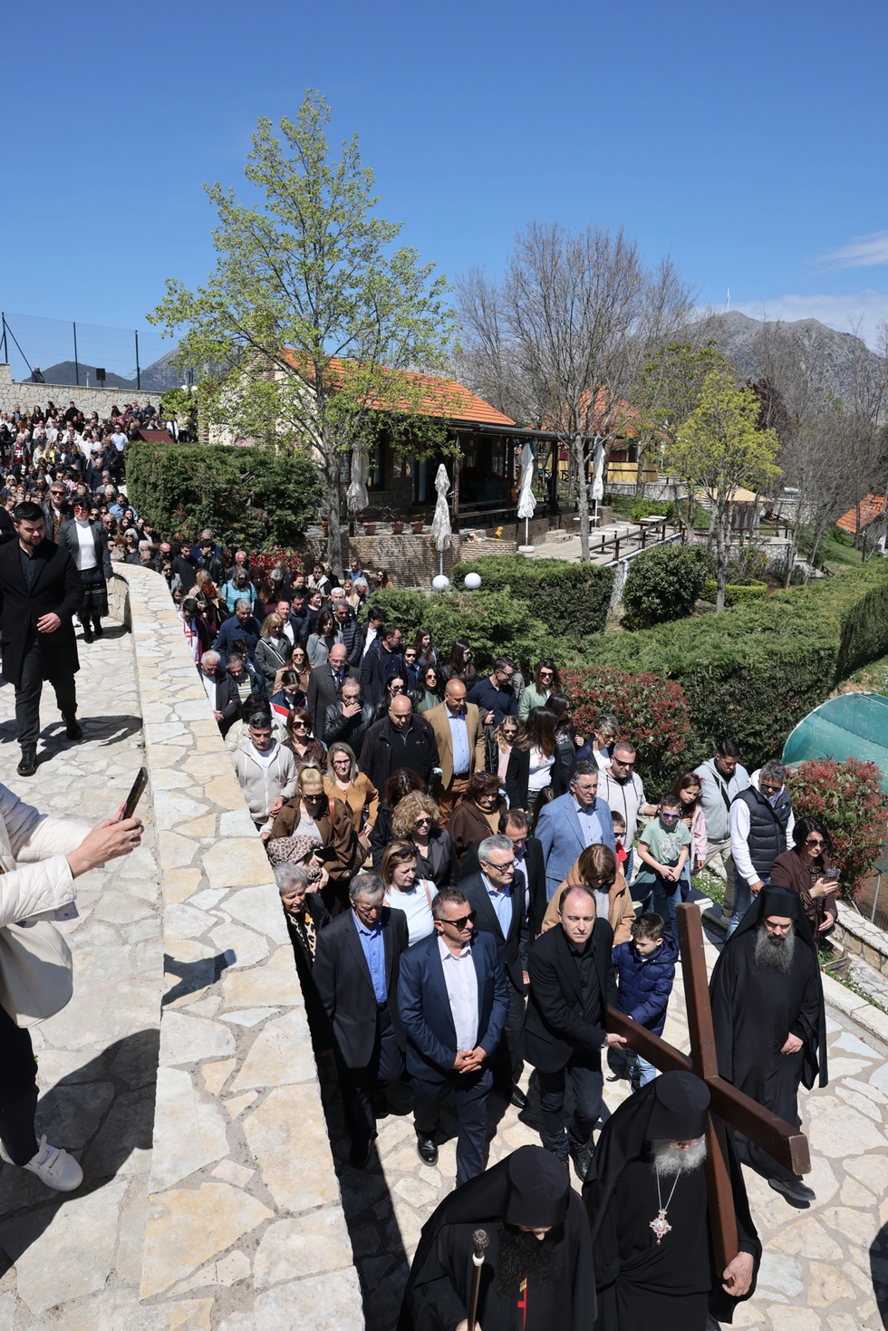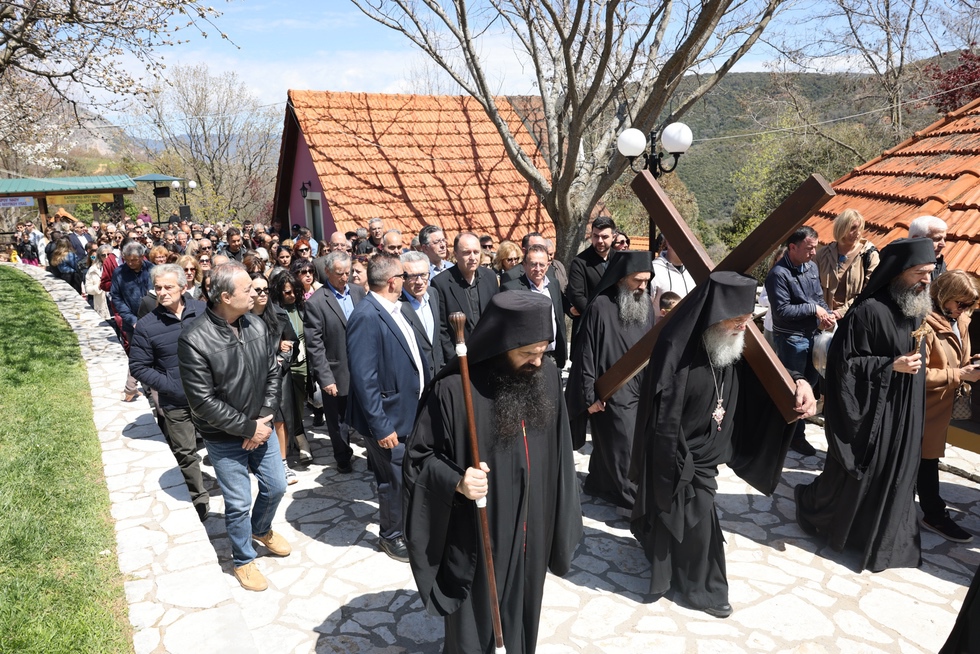 Πιστοί, άρχοντες, κληρικοί και μοναχοί από διάφορα μέρη της Ελλάδος κατέκλισαν τους χώρους της Μονής για να συμμετάσχουν στην τελετή της Αποκαθηλώσεως που τελείται σύμφωνα με το Ιεροσολυμίτικο τυπικό κάθε χρόνο στο Τρίκορφο Φωκίδος.