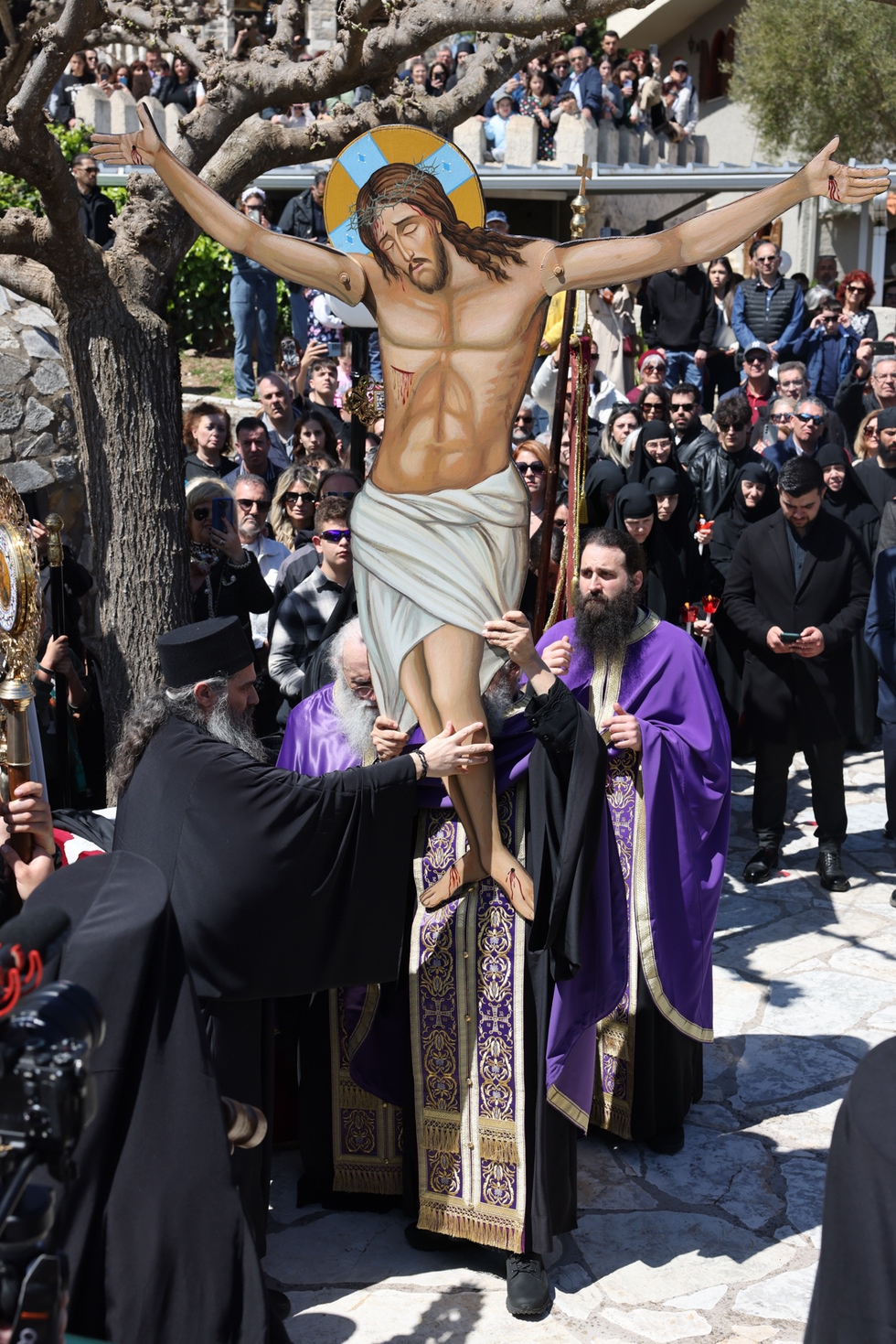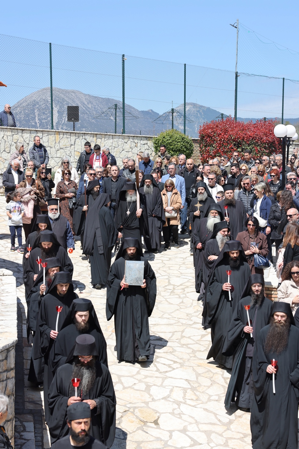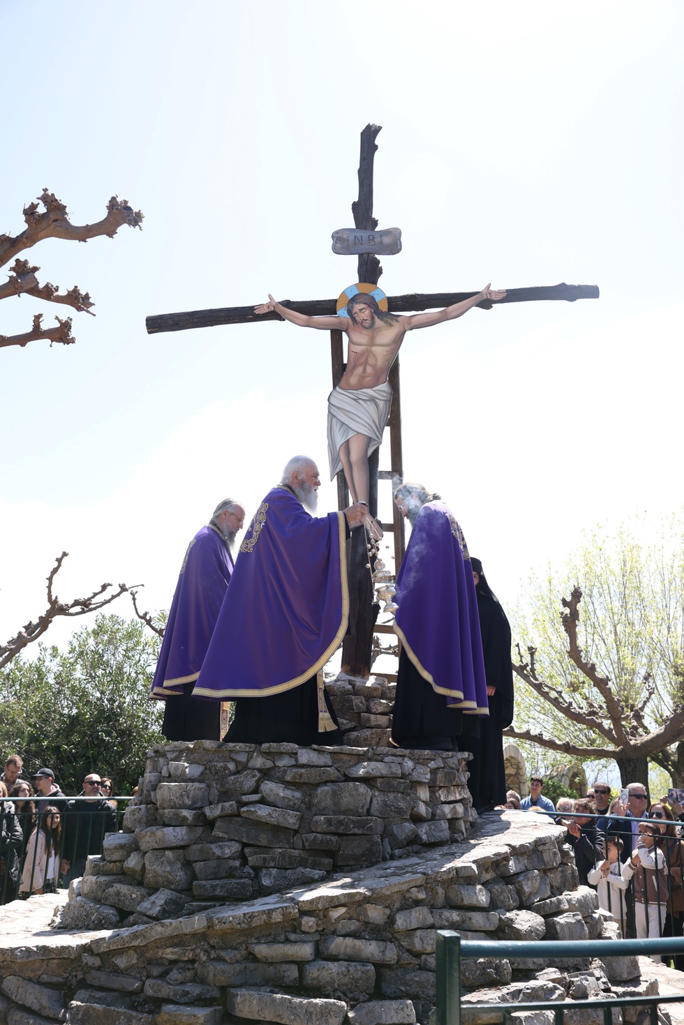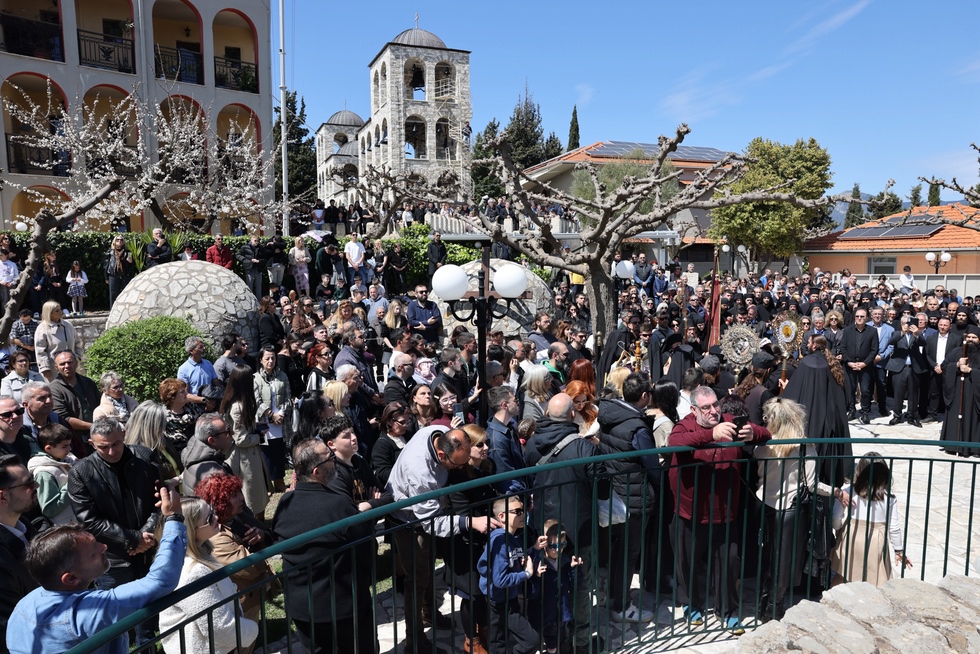 Πιστοί, άρχοντες, κληρικοί και μοναχοί από διάφορα μέρη της Ελλάδος κατέκλισαν τους χώρους της Μονής για να συμμετάσχουν στην τελετή της Αποκαθηλώσεως που τελείται σύμφωνα με το Ιεροσολυμίτικο τυπικό κάθε χρόνο στο Τρίκορφο Φωκίδος.