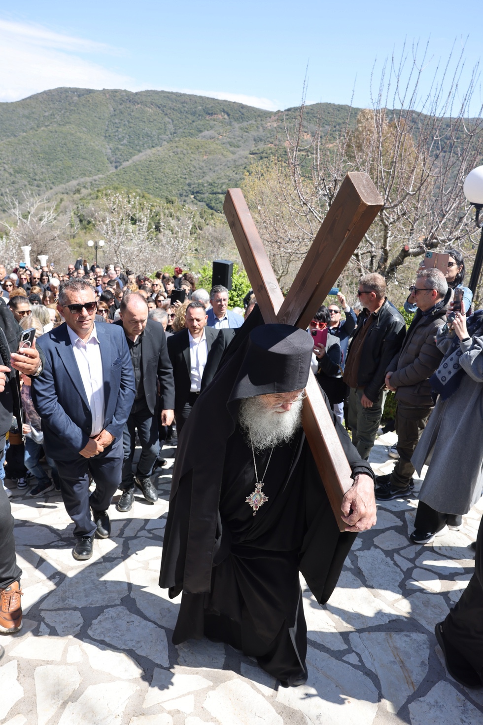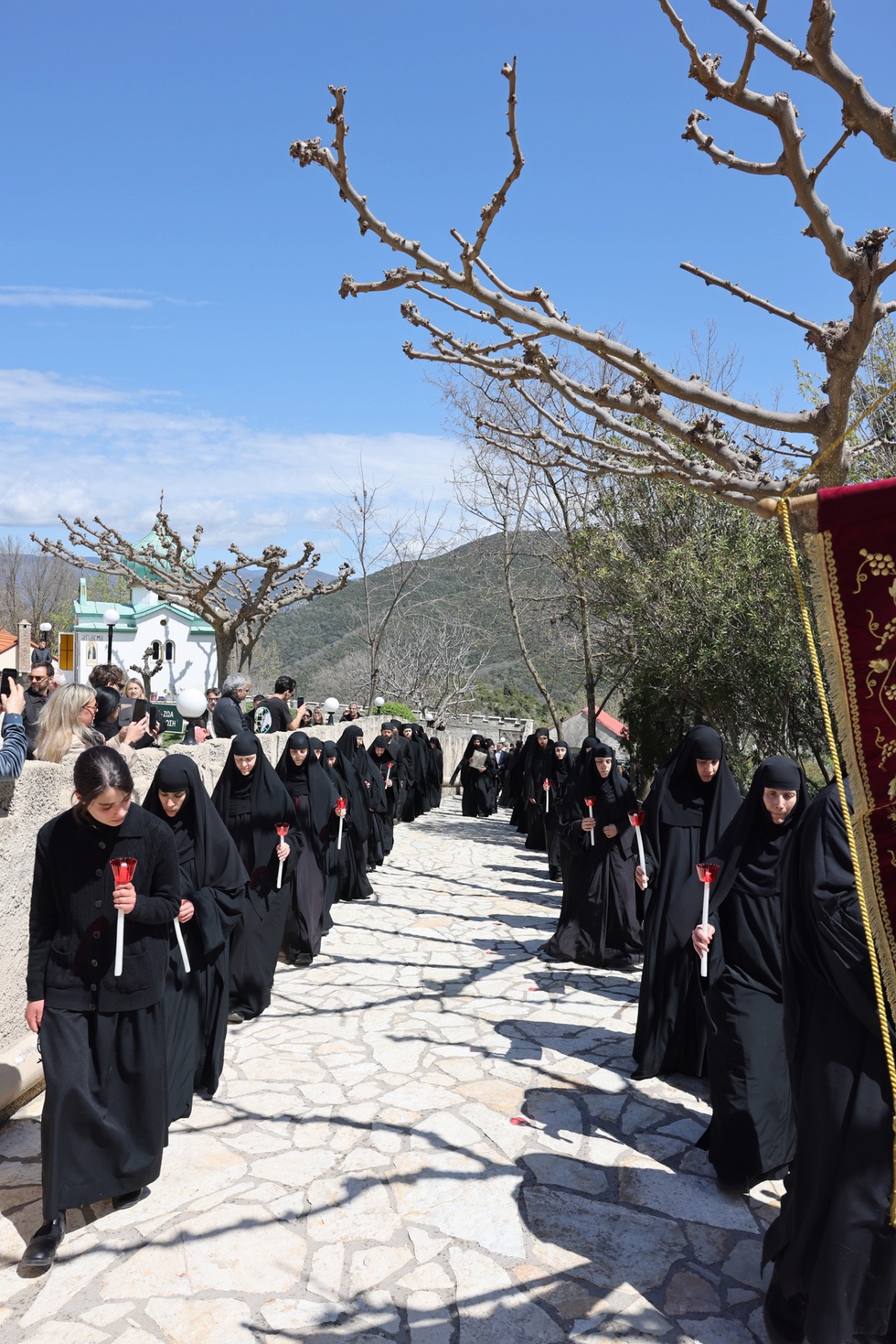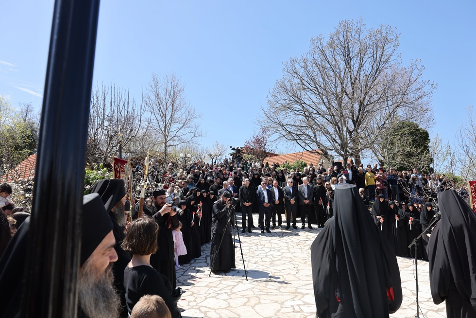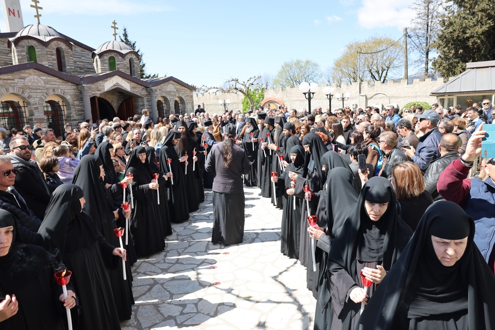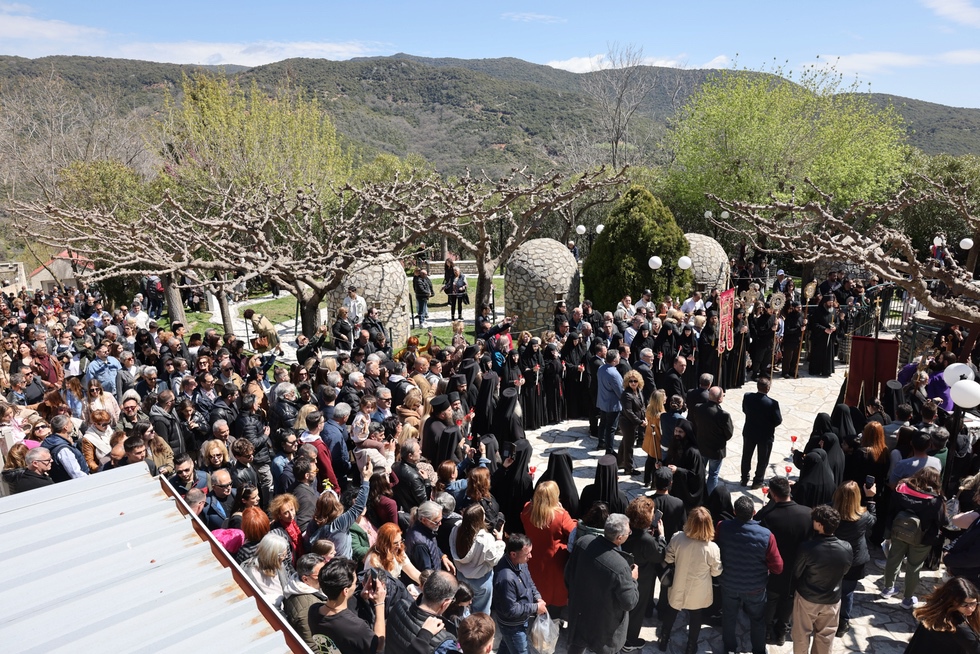 Πιστοί, άρχοντες, κληρικοί και μοναχοί από διάφορα μέρη της Ελλάδος κατέκλισαν τους χώρους της Μονής για να συμμετάσχουν στην τελετή της Αποκαθηλώσεως που τελείται σύμφωνα με το Ιεροσολυμίτικο τυπικό κάθε χρόνο στο Τρίκορφο Φωκίδος.