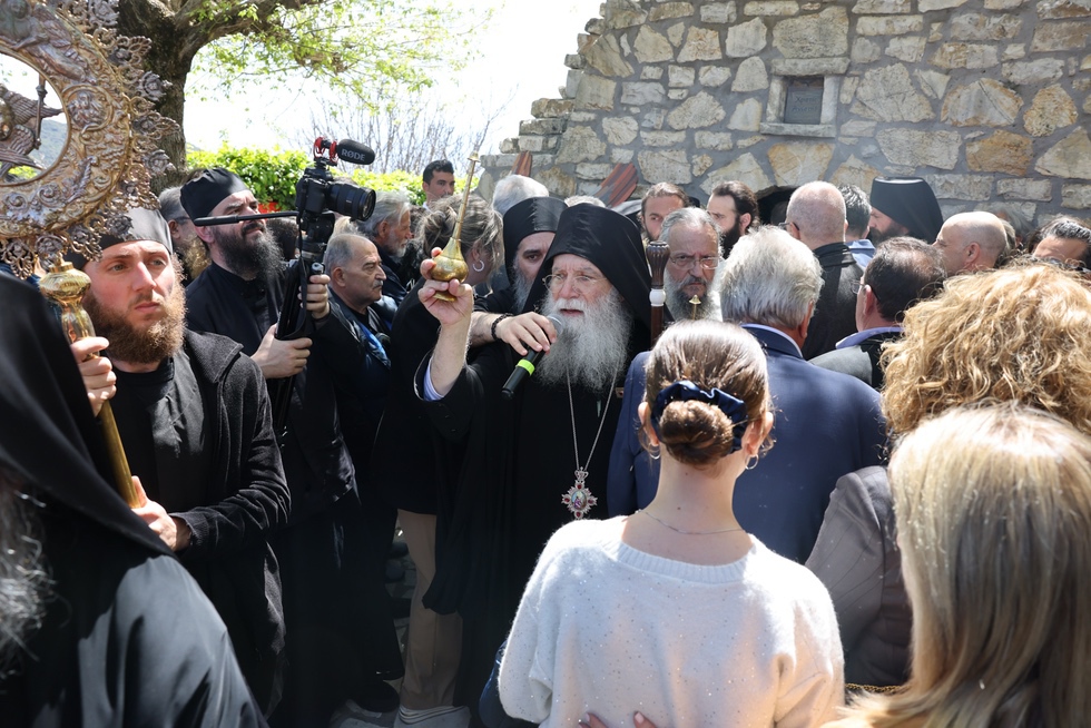 Οι μοναχοί του Τρικόρφου μετά το τέλος της ιεράς τελετής πρόσφεραν σε όλους μοναστηριακό κέρασμα.