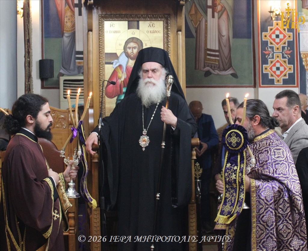 Με κατάνυξη ετελέσθη, το εσπέρας της Μεγάλης Τρίτης, 7 Απριλίου 2026, η Ακολουθία του Νυμφίου στην ενορία των Παμμεγίστων Ταξιαρχών στην πόλη της Άρτας, προεξάρχοντος του Σεβασμιωτάτου Μητροπολίτου Άρτης κ. Καλλινίκου.