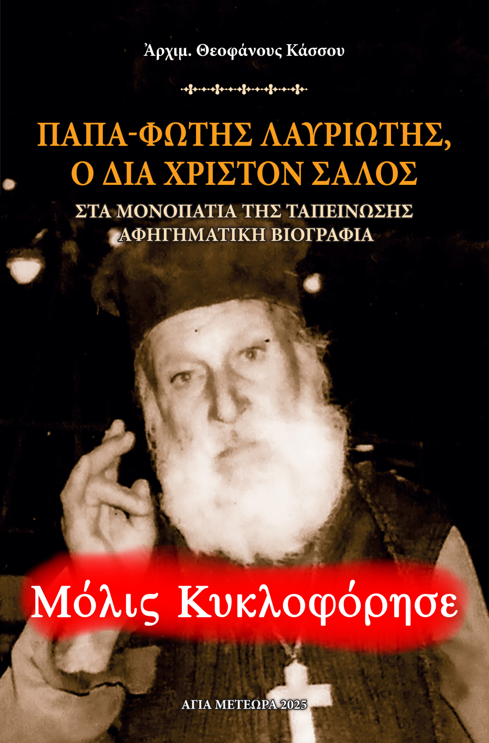 Τό βιβλίο αὐτό, μέ τόν τίτλο: «Παπα-Φώτης ὁ διά Χριστόν Σαλός: Ἀφηγηματική Βιογραφία», ἀποτελεῖ ἀπόπειρα ἁπλῆς προσέγγισης ἑνός μεγάλου μυστηρίου. Οἱ σελίδες του ἐπιχειροῦν νά φωτίσουν κάποιες ἀπό τίς μοναδικές στιγμές τοῦ βίου του, αὐτές τίς μαρτυρίες ἀγάπης καί αὐτή τήν φαινομενική «τρέλλα», πού δέν ἦταν παρά ἡ βαθιά του ἀφοσίωση στόν Ἐσταυρωμένο. Εἶναι μικρές ψηφῖδες ἑνός πνευματικοῦ πορτρέτου, στιγμιότυπα μιᾶς ζωῆς ἀφιερωμένης ὁλοκληρωτικά στόν Θεό καί τόν πλησίον. Δέν εἶναι βιογραφία μέ τή στενή ἔννοια· εἶναι μνημόσυνο ἀγάπης. Εἶναι κατάθεση καρδιᾶς, εὐγνωμοσύνης καί μαρτυρίας γιά ἕναν ἄνθρωπο πού ἔζησε τό Εὐαγγέλιο, ὄχι ὡς ἠθική θεωρία, ἀλλά ὡς τρόπο ὑπάρξεως. Περιλαμβάνει προσωπικές ἀναμνήσεις, ἀφηγήσεις, στιγμιότυπα, ὅλα ἐνταγμένα στό φῶς τῆς πίστεως καί στήν προσευχητική σιγή πού ἀγκάλιαζε τήν ὕπαρξή του.