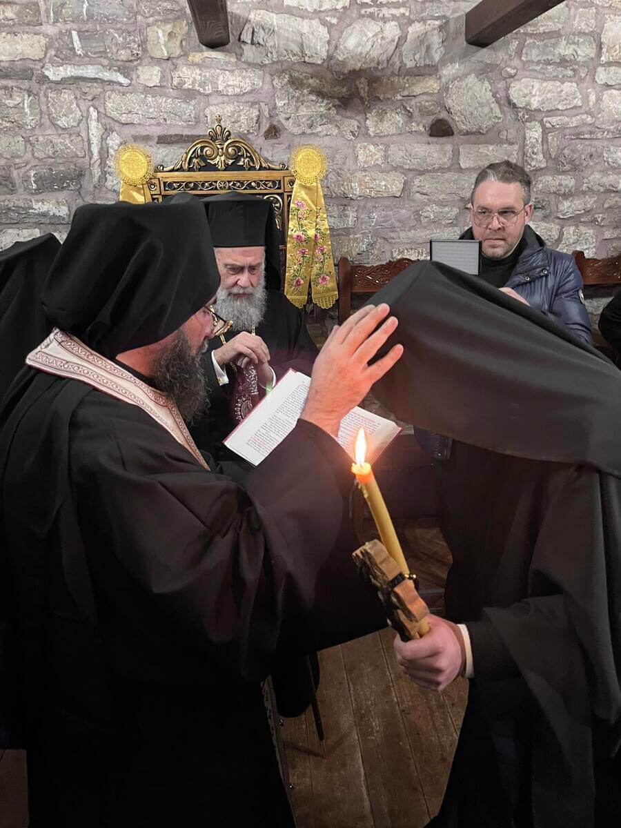 Κατά τη διάρκεια της ακολουθίας, ο Σεβασμιώτατος τέλεσε τη μοναχική κουρά του δοκίμου της Ιεράς Μονής Αθανασίου Νιαβή, ο οποίος εκάρη μοναχός λαμβάνοντας το όνομα Τιμόθεος. Η ιερά αυτή στιγμή πραγματοποιήθηκε μέσα σε κλίμα κατάνυξης και πνευματικής χαράς, με τη συμμετοχή της αδελφότητος και των παρευρισκομένων πιστών, μεταξύ των οποίων παρευρέθη και ο Α΄ Γραμματεύς της Ιεράς Συνόδου Πανοσιολογιώτατος Αρχιμανδρίτης π. Δαμασκηνός Πετράκος, οι οποίοι προσευχήθηκαν για την ενίσχυση του νέου μοναχού στον πνευματικό του αγώνα.