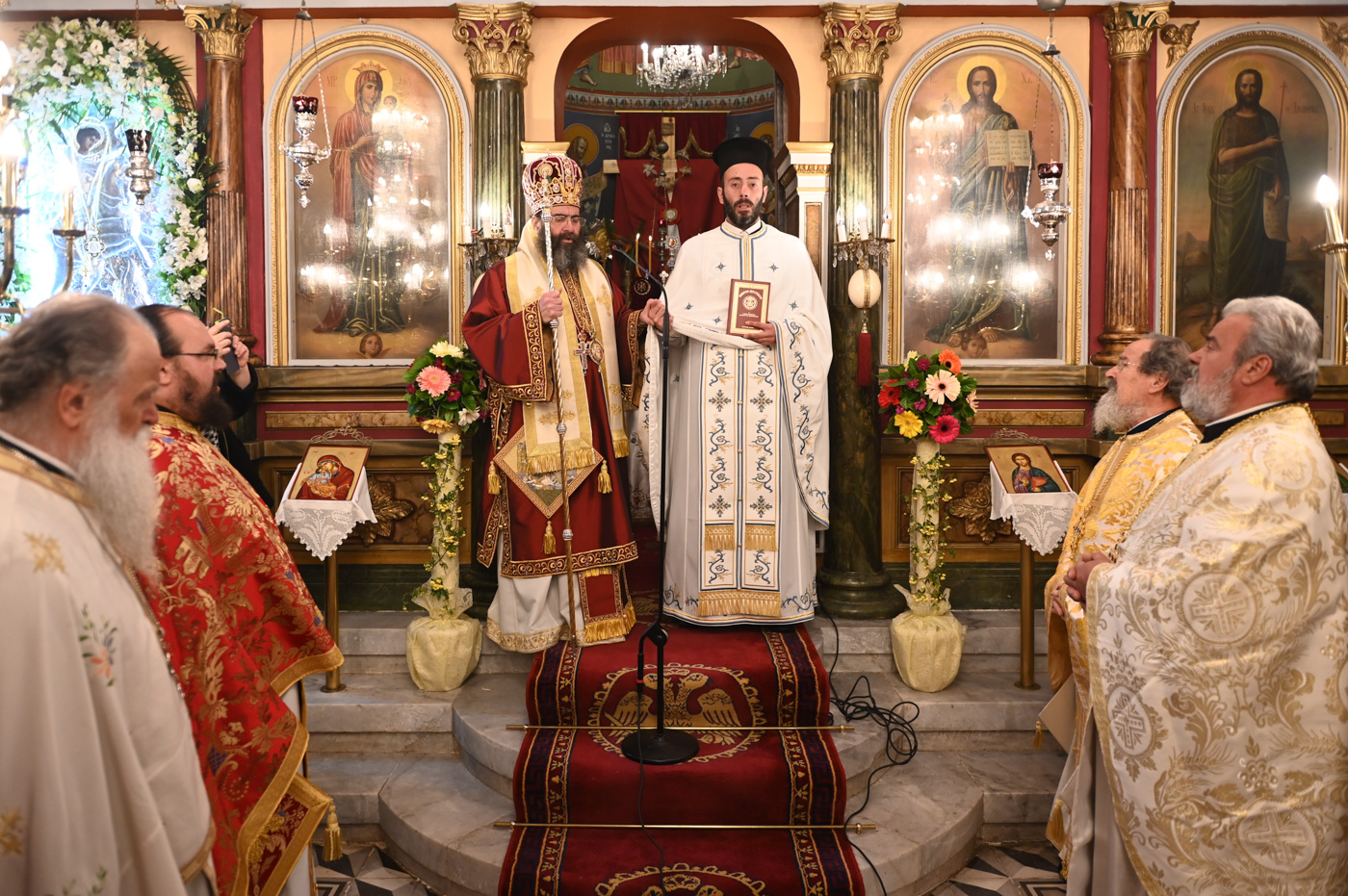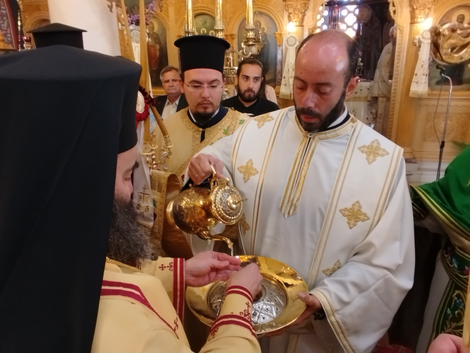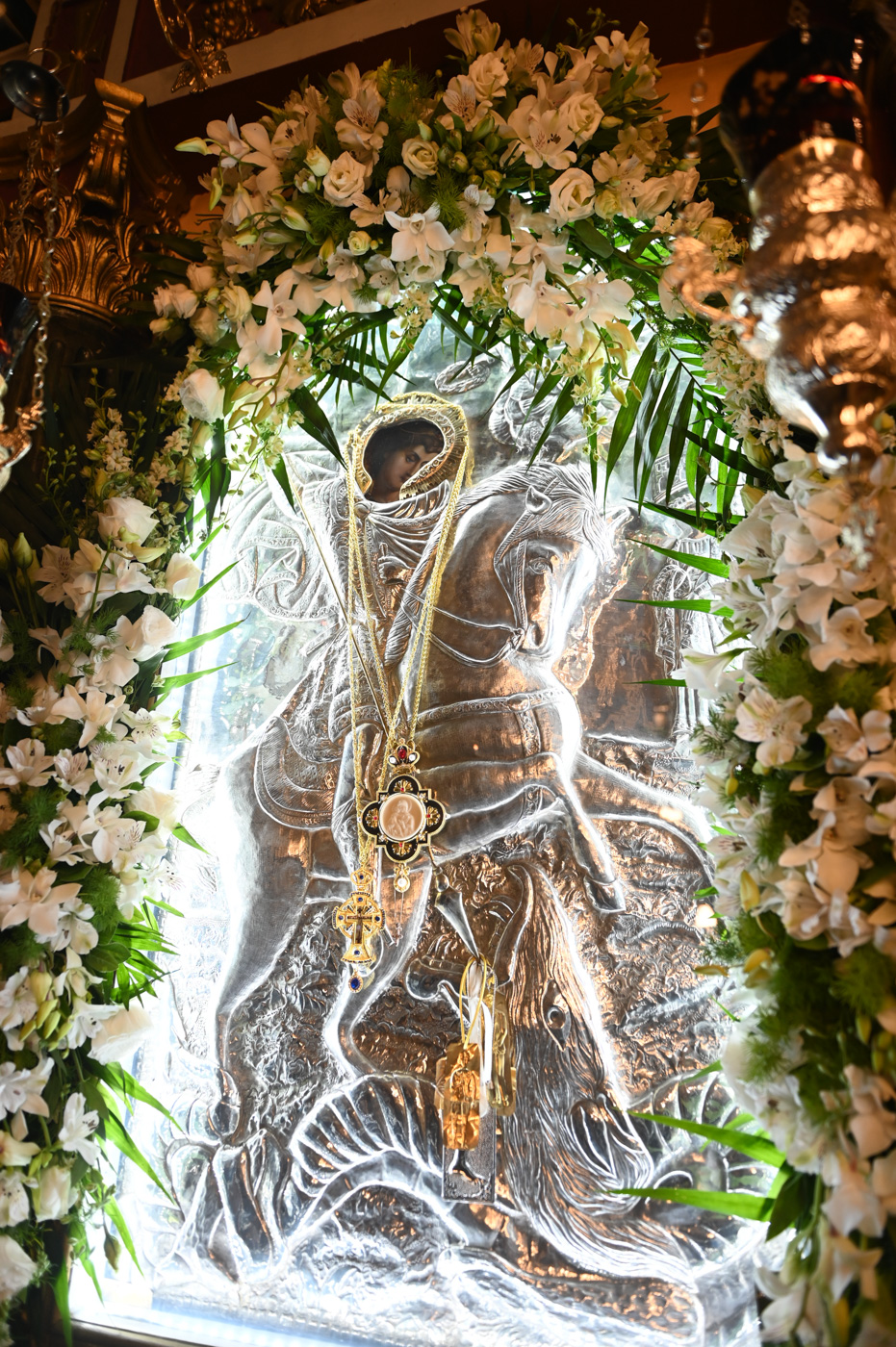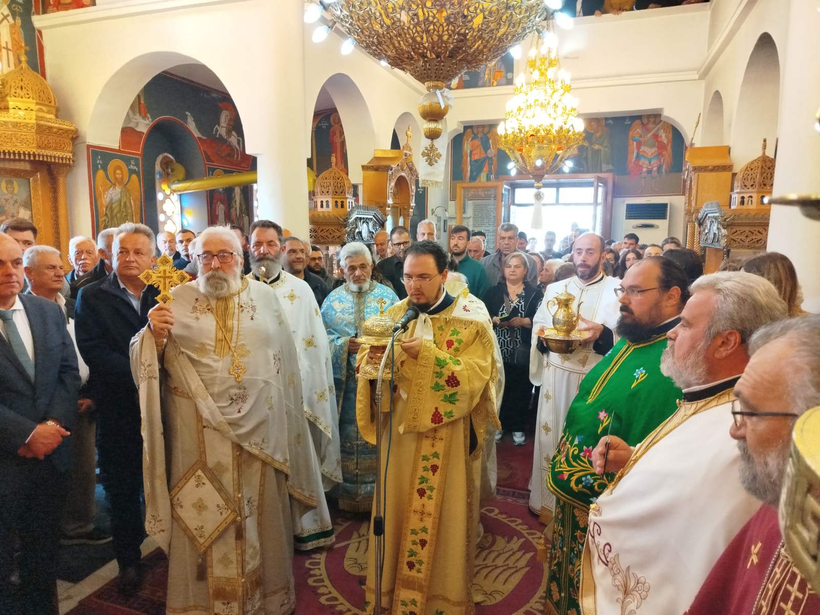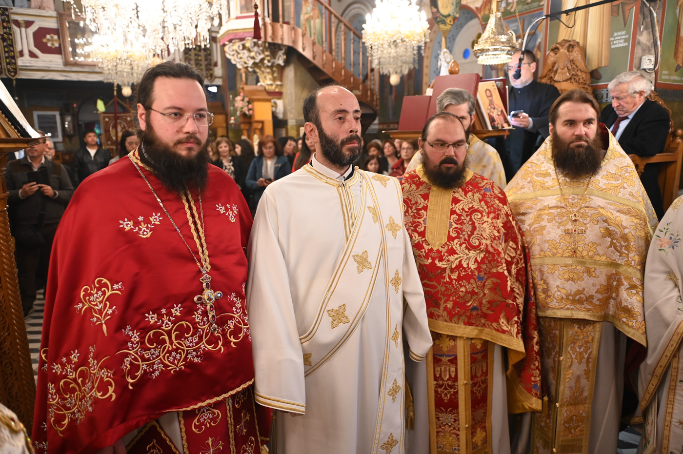 Πιστοί κατέκλυσαν τον πανηγυρίζοντα Ιερό Ναό του Αγίου Γεωργίου, με σκοπό να συμμετάσχουν στην Θεία Λειτουργία, να προσκυνήσουν τμήμα Ιερού Λειψάνου του εορταζομένου Αγίου και να ευχηθούν τα δέοντα στο νέο κληρικό της Μητροπόλεως.