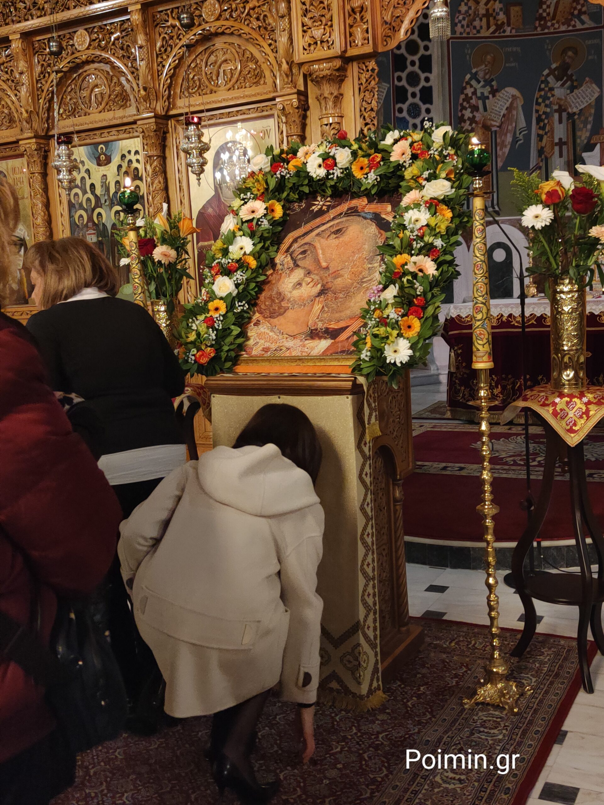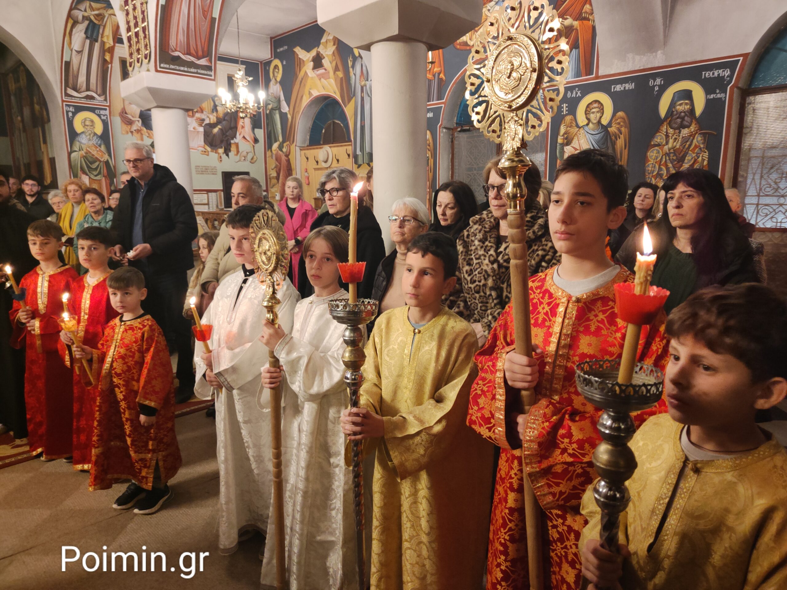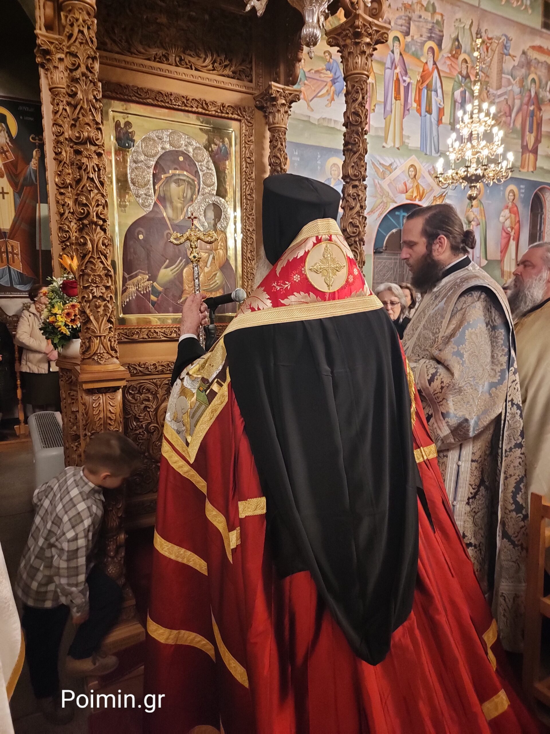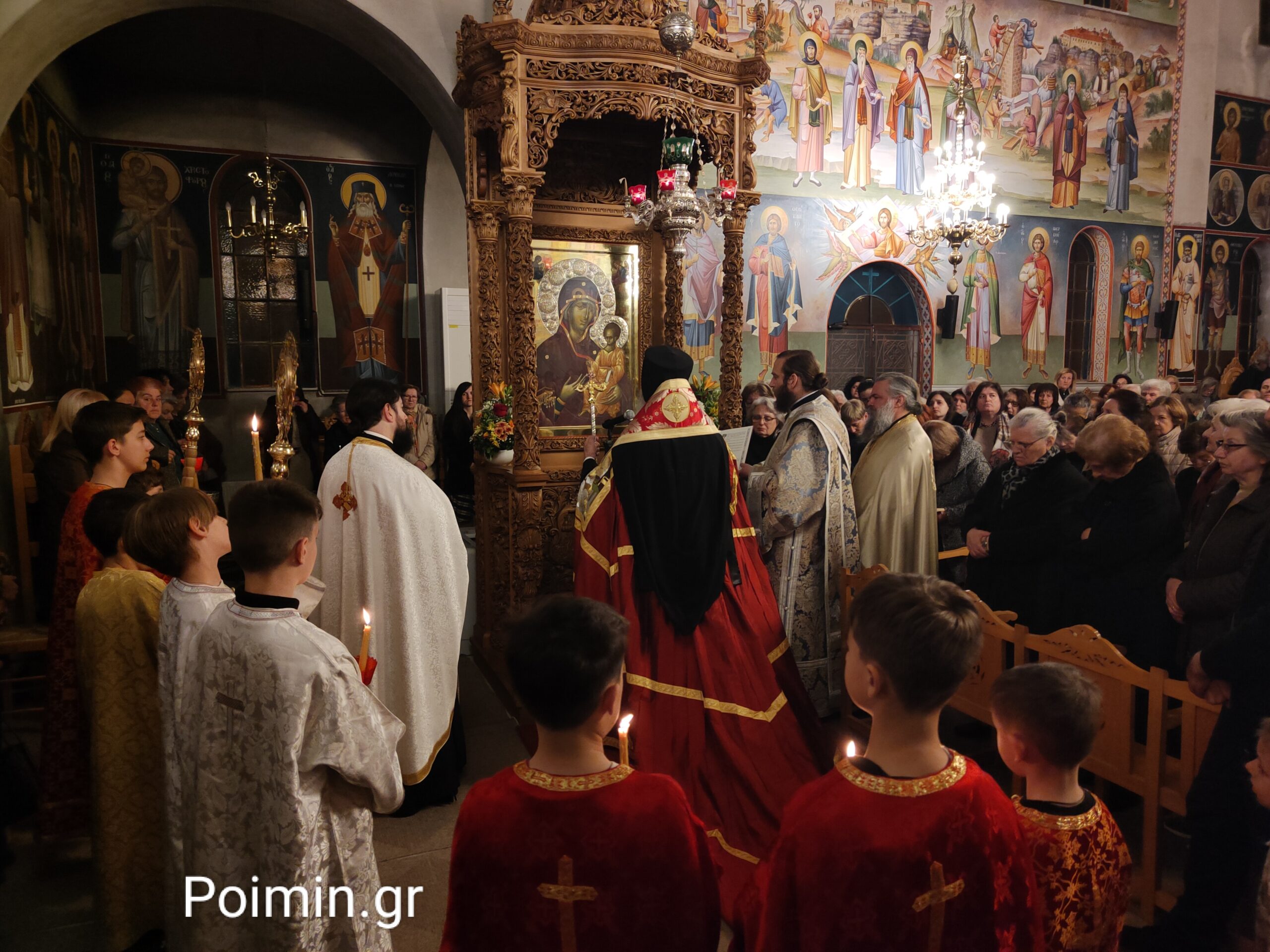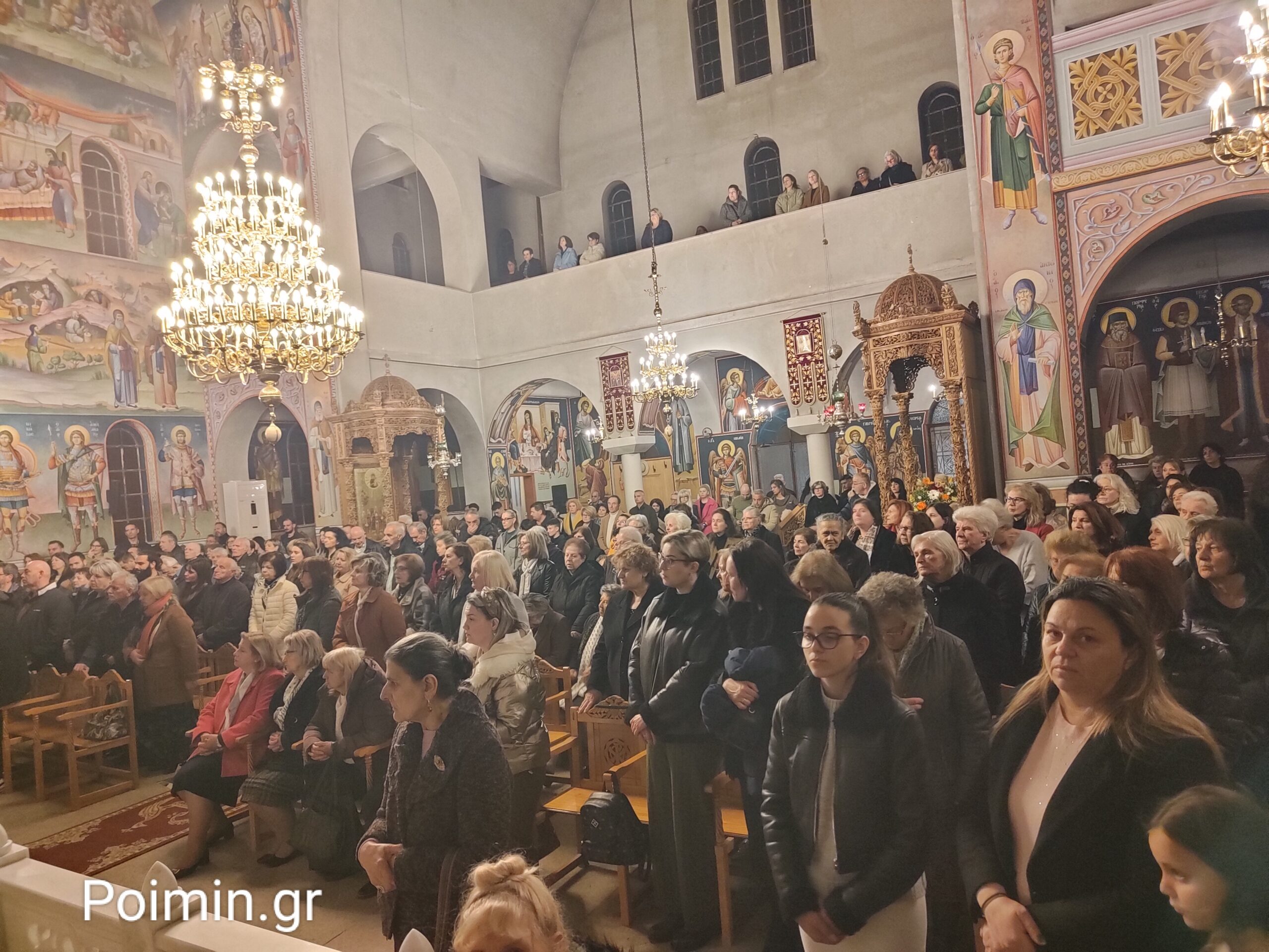 Οι ευλαβείς χριστιανοί προσήλθαν στον ναό για να τιμήσουν την Υπεραγία Θεοτόκο, ψάλλοντας τους Χαιρετισμούς μέσα σε κλίμα προσευχής και πνευματικής περισυλλογής.