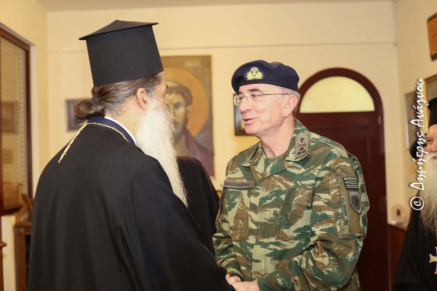 Ο κ. Συμεών υποδέχθηκε με αγάπη και σεβασμό τον κ. Διοικητή και του ευχήθηκε την από Θεού δύναμη στην διακονία του στον Ελληνικό Στρατό, υπογραμμίζοντας συνάμα και την αγαστή και ουσιαστική συνεργασία της τοπικής Εκκλησίας με το ΚΕΥΠ προς όφελος των στρατιωτών και των στελεχών.