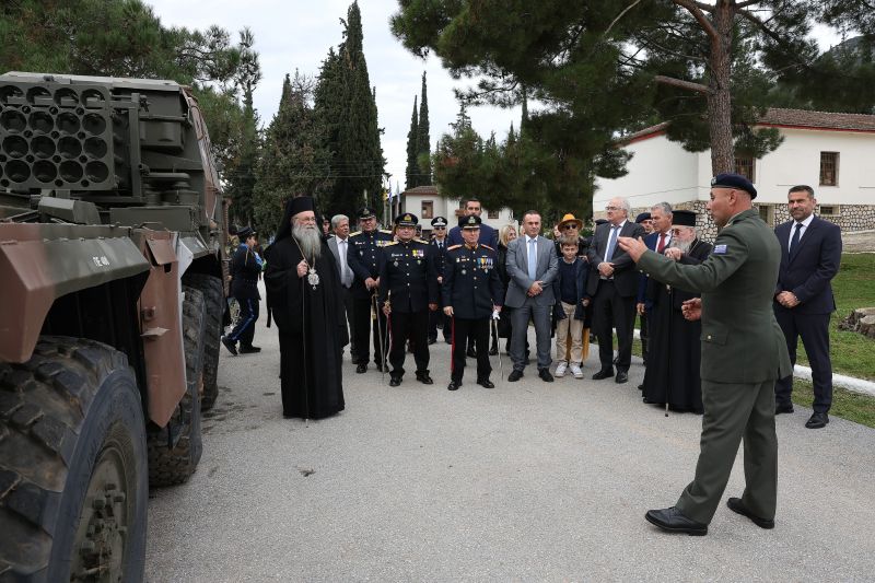 Μετά το πέρας της Θείας Λειτουργίας, οι Αρχιερείς, με τους εκπροσώπους της πολιτειακής, πολιτικής και στρατιωτικής ηγεσίας του τόπου, κατευθύνθηκαν στο Στρατόπεδο «Φωστηρίδη» του Πυροβολικού και τέλεσαν Δοξολογία.