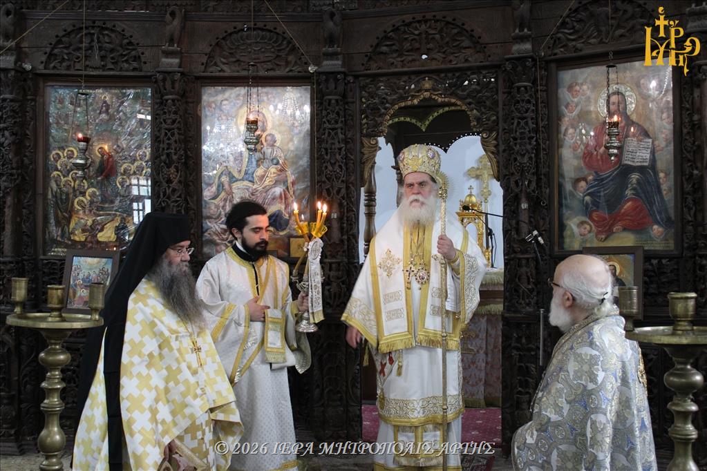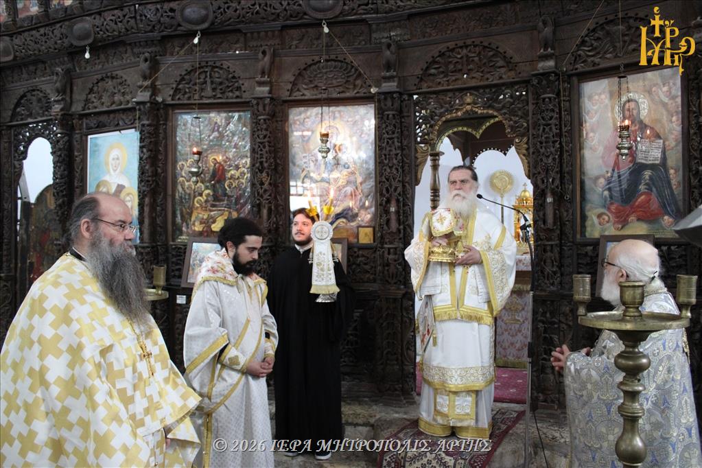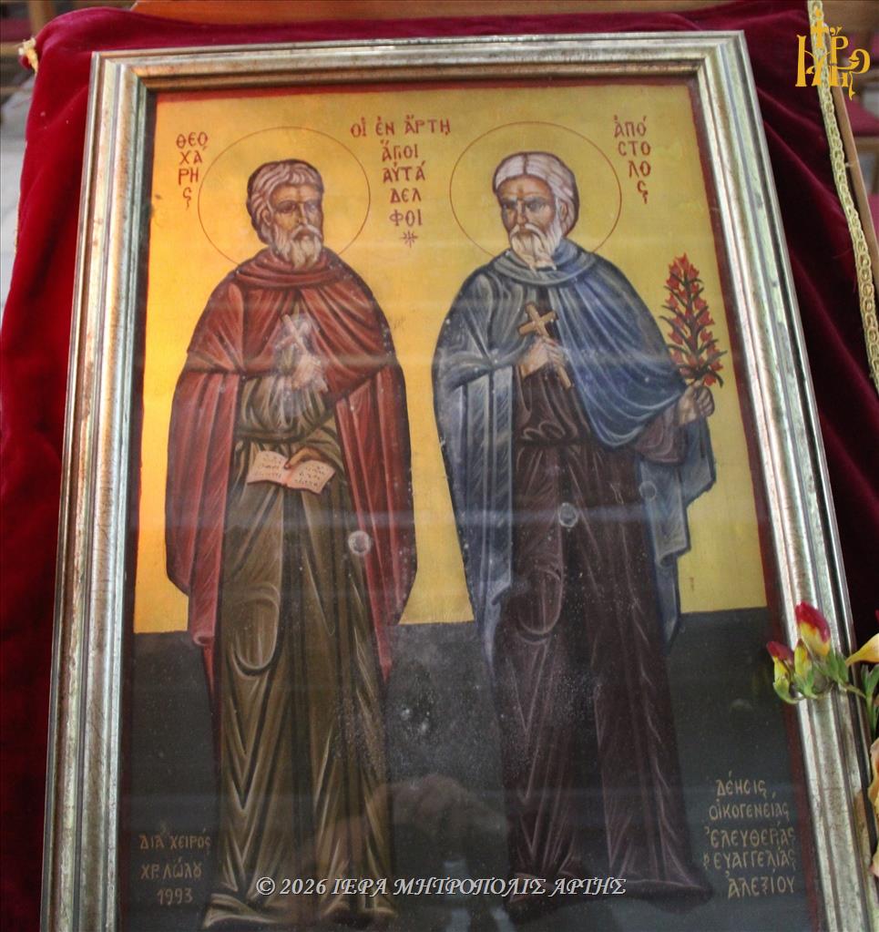 Την Τετάρτη της Διακαινησίμου, 15 Απριλίου 2026, το πρωΐ, επί τη μνήμη των Οσίων Αυταδέλφων Θεοχάρους και Αποστόλου των εν Άρτη, ετελέσθη Θεία Λειτουργία στον Ιερό Ναό της Αγίας Σοφίας Άρτης, όπου φυλάσσεται η Εικόνα των Αγίων, ιερουργούντος του Σεβασμιωτάτου Μητροπολίτου Άρτης κ. Καλλινίκου.