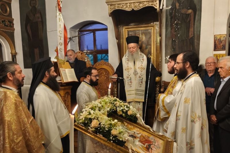 Ο Σεβασμιώτατος Ποιμενάρχης μας, Μητροπολίτης Χαλκίδος κ. Χρυσόστομος, κατά τον Εσπερινό της εορτής του αγίου, χοροστάτησε στον πανηγυρίζοντα ομώνυμο Ενοριακό Ι. Ναό των Βούνων, στους πρόποδες του όρους Δίρφυς.