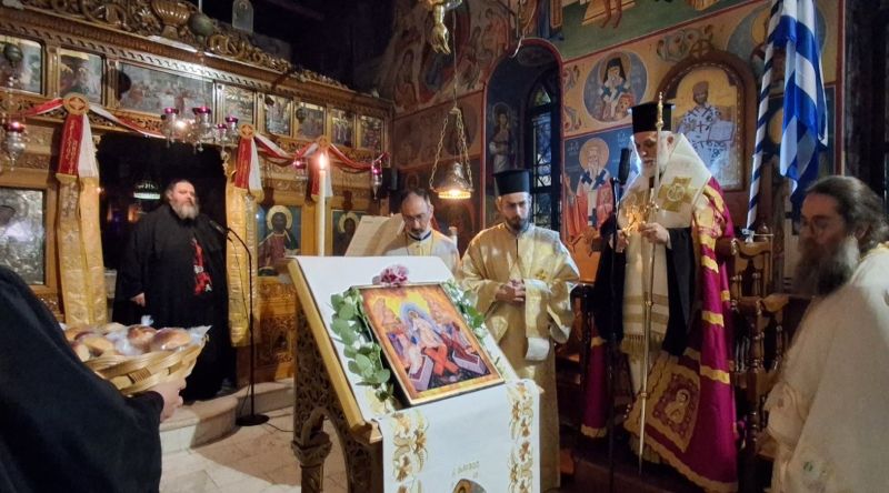 Κατά τον Εσπερινό, στην ιστορική Ι. Μονή αγ. Γεωργίου «ΑΡΜΑ» Φύλλων, χοροστάτησε και κήρυξε τον θείο λόγο ο Θεοφιλέστατος Επίσκοπος Σκοπέλου κ. Νικόδημος, ο οποίος, κατόπιν μετέβη στην Ι. Μονή Κοιμήσεως Θεοτόκου Μακρυμάλλη Ψαχνών, όπου χοροστάτησε κατά την ιερά αγρυπνία προς τιμήν του αγίου τροπαιοφόρου μεγαλομάρτυρος.