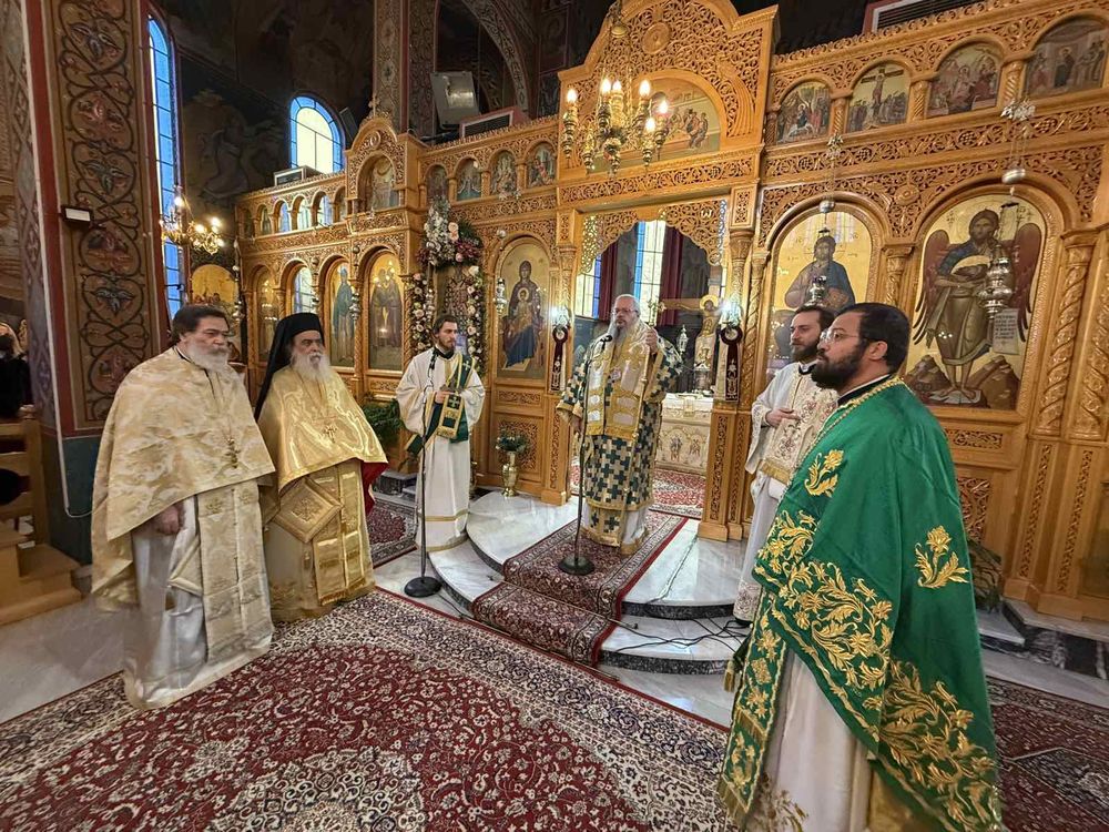 Τον Σεβασμιώτατο πλαισιώσαν οι Εφημέριοι του Ιερού Ναού, καθώς και ο Πανοσιολ. Αρχιμ. κ. Διονύσιος Παπαλέξης. Χαρακτηριστικό της σημερινής πανηγύρεως, το πλήθος του λαού που πλημμύρισε τον Ναό και τους γύρω χώρους.