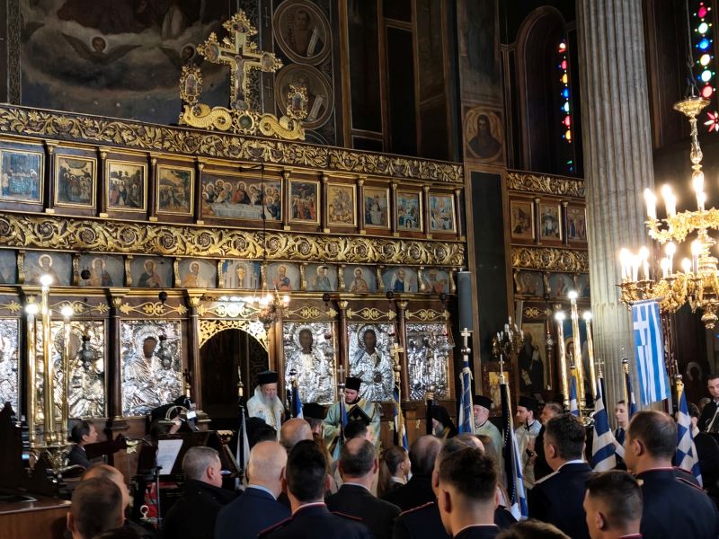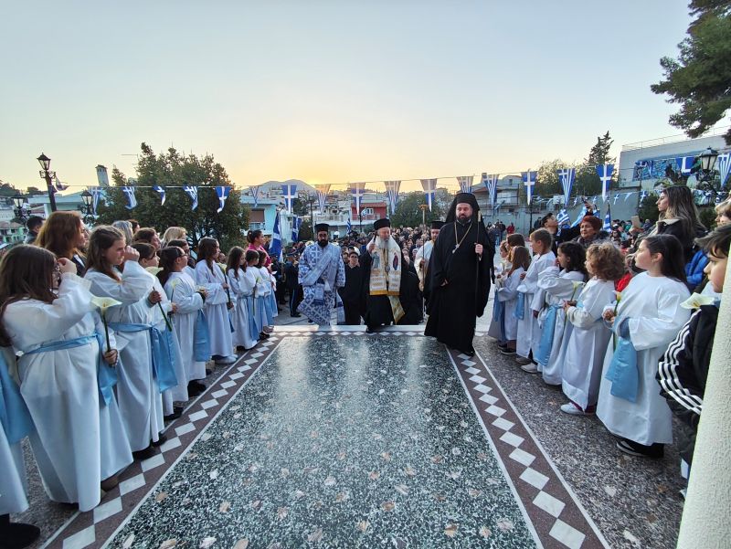 Μετά τη Θεία Λειτουργία, ο Σεβασμιώτατος μετέβη στον Ι. Ναό του αγίου Νικολάου Χαλκίδος, όπου προεξήρχε, ενώπιον των Αρχών του Τόπου και του Λαού, στη Δοξολογία για την Εθνική Εορτή, στην Επιμνημόσυνη Δέηση στο Ηρώον και εν συνεχεία παρακολούθησε την μαθητική και στρατιωτική παρέλαση στην Παραλία Χαλκίδος.